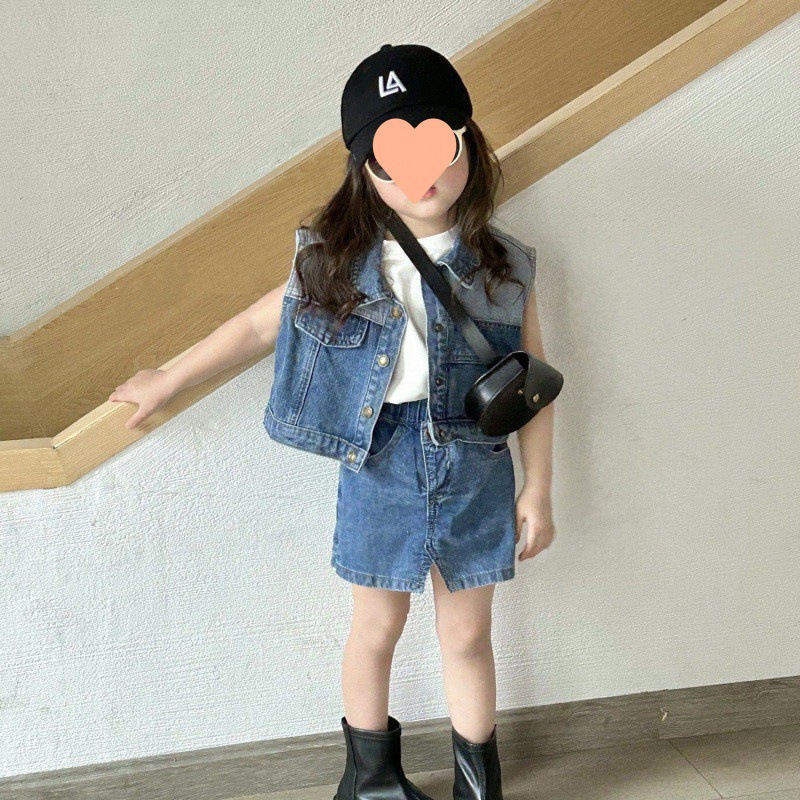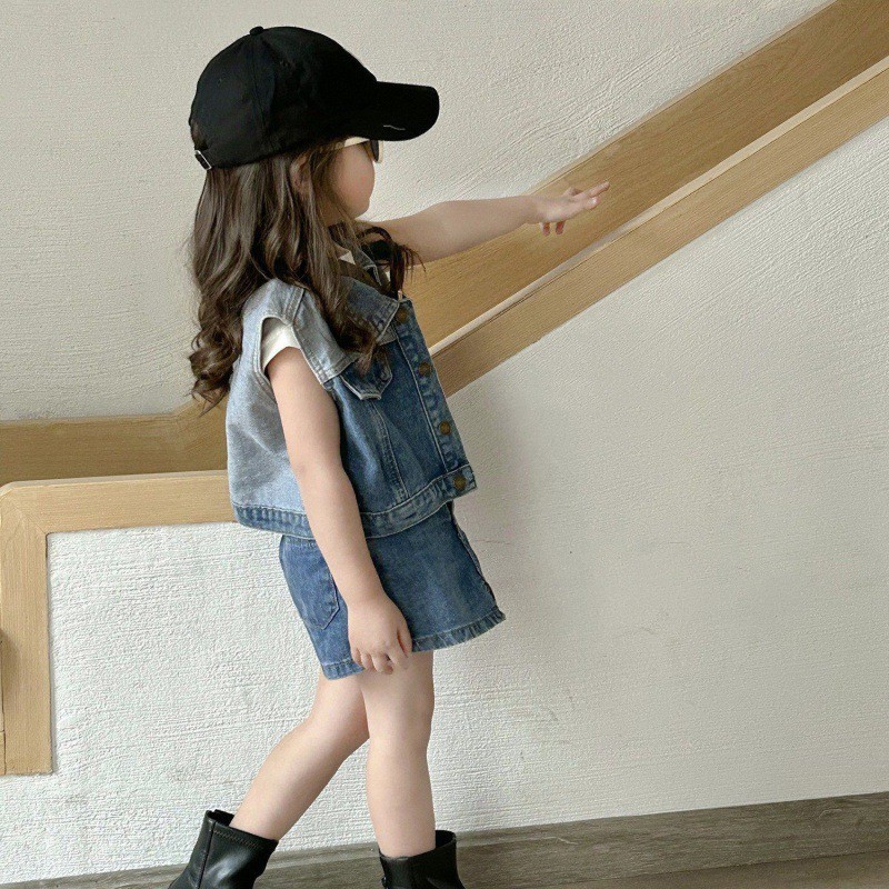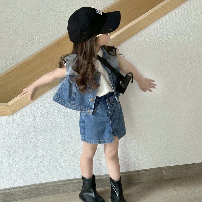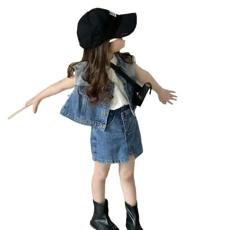| nameOriginal | Girls suit Spring and Summer New Children's Denim Vest Shorts Baby Sleeveless Vest Denim Culottes Outer Wear |