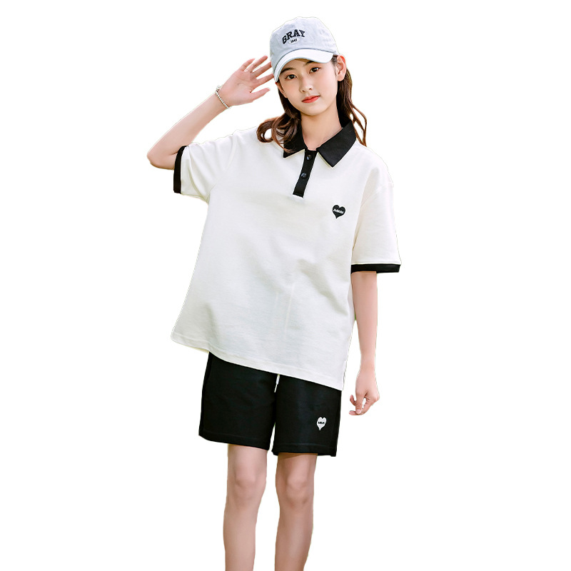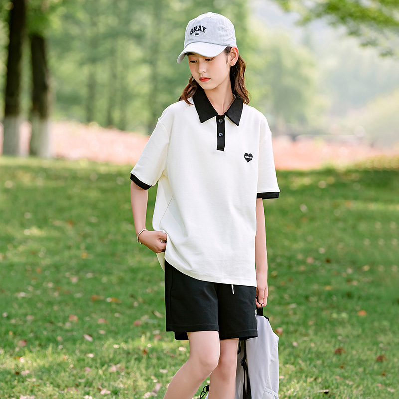 | nameOriginal | Girls' suit summer 2023 New polo collar embroidered short-sleeved sportswear Korean style casual two-piece suit for middle and big children |