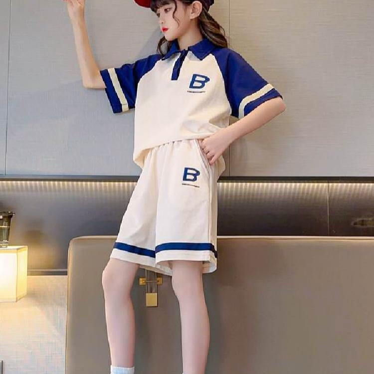 Girls' suit Summer 2024 New Children's Fashion Casual Sportswear Girls' Polo Shirt Two-Piece Fashionable Set