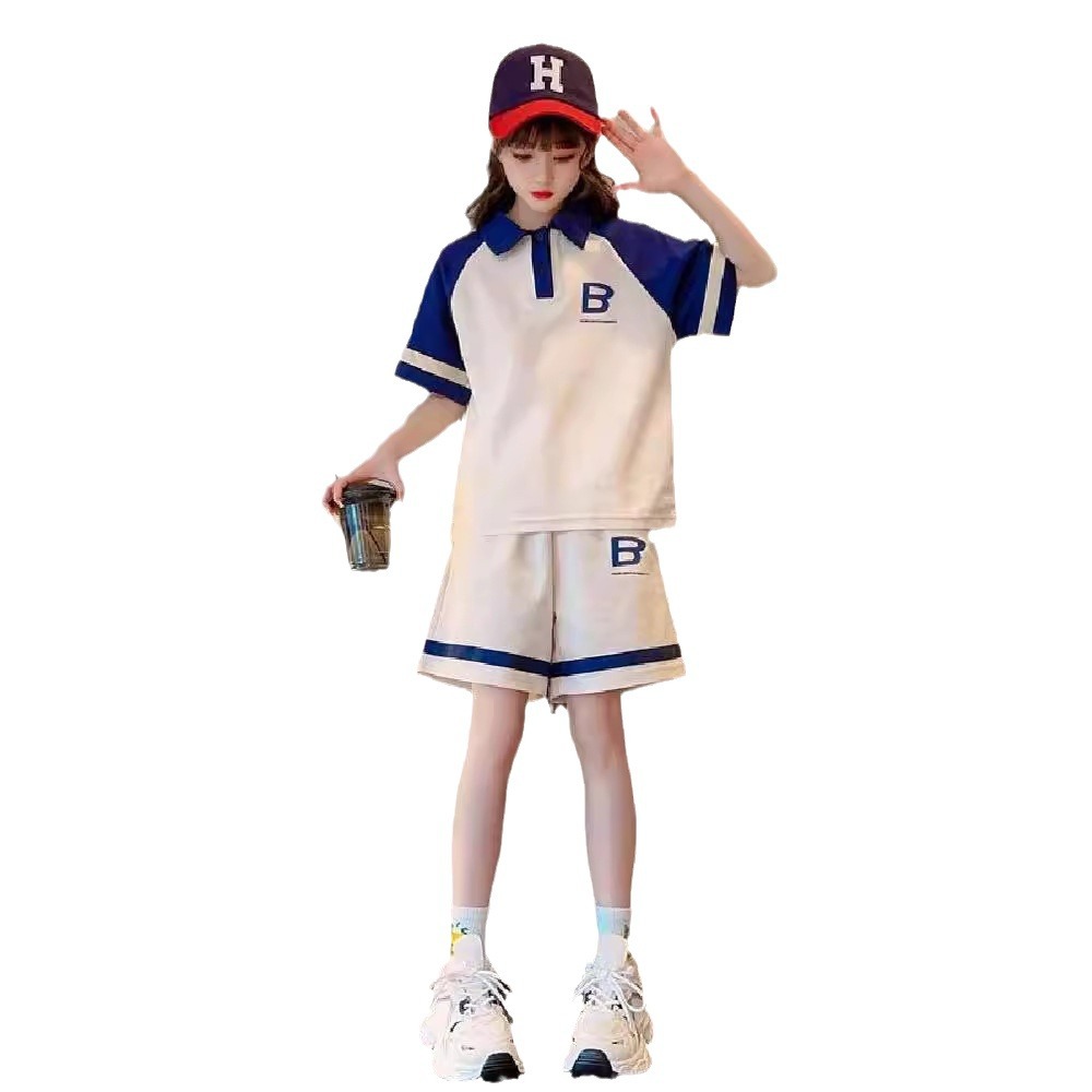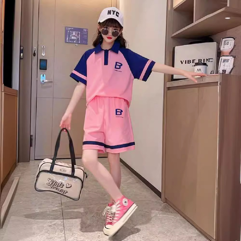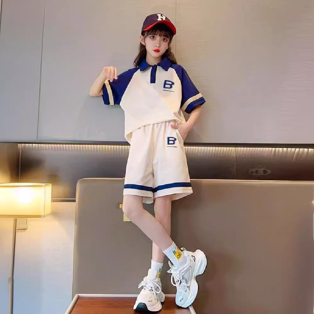 Girls’ suit Summer 2024 New Children’s Fashion Casual Sportswear Girls’ Polo Shirt Two-Piece Fashionable Set