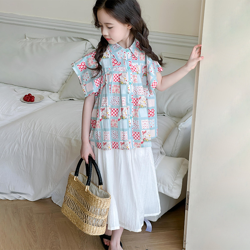 | nameOriginal | Girls' Summer 2024 New Style Western Style Shirt Big Children's Short-sleeved Shirt Children's Summer Girls Internet Popular Street Top |