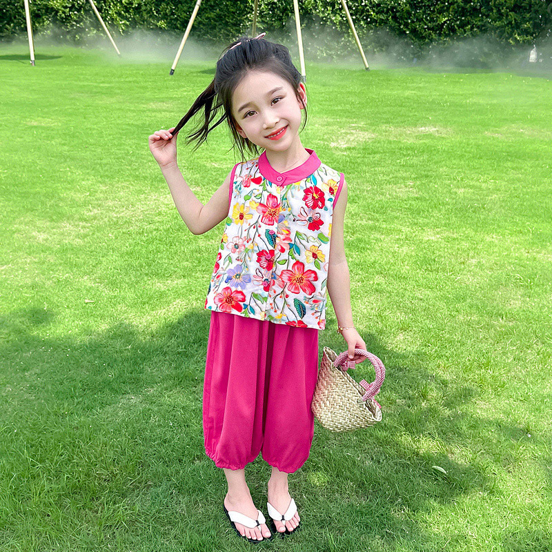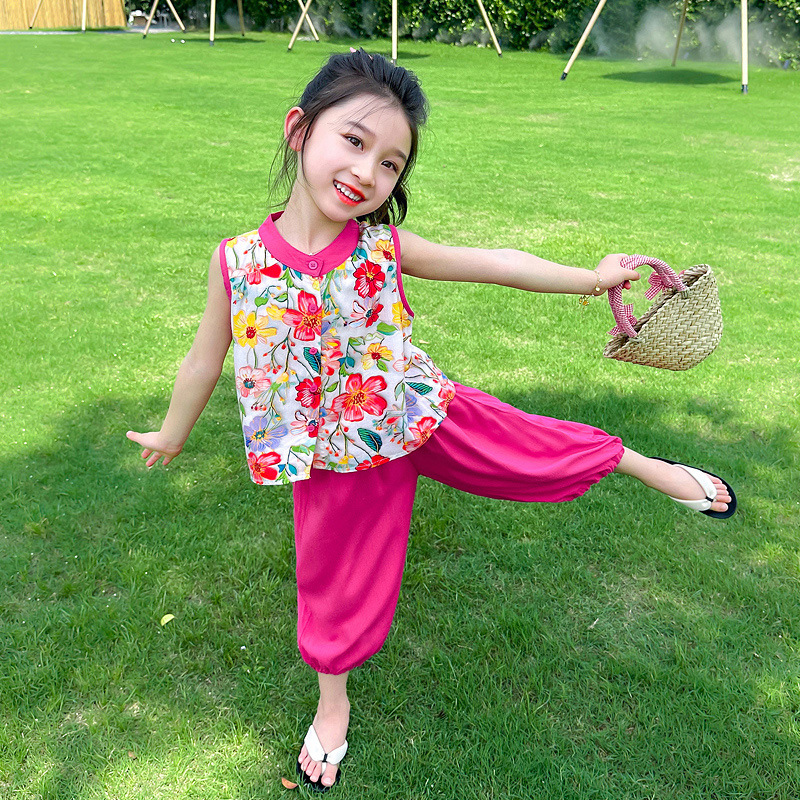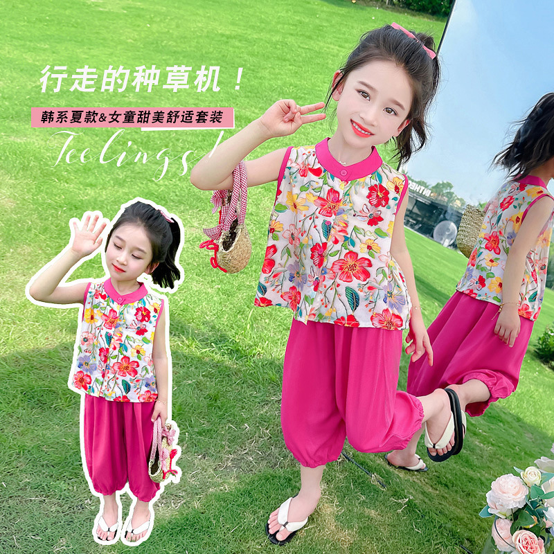 | nameOriginal | Girl's Summer 2024 New Sweet Floral Shirt Anti-mosquito Pants Suit Girl's Summer Thin Two-piece Fashionable Set |