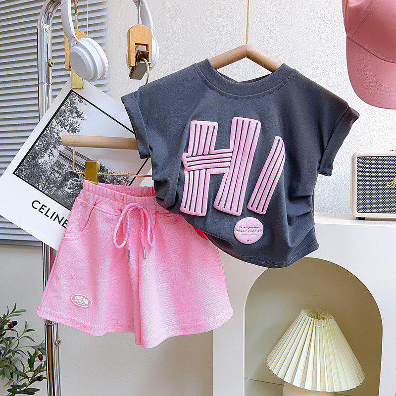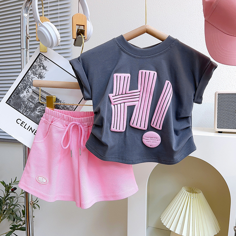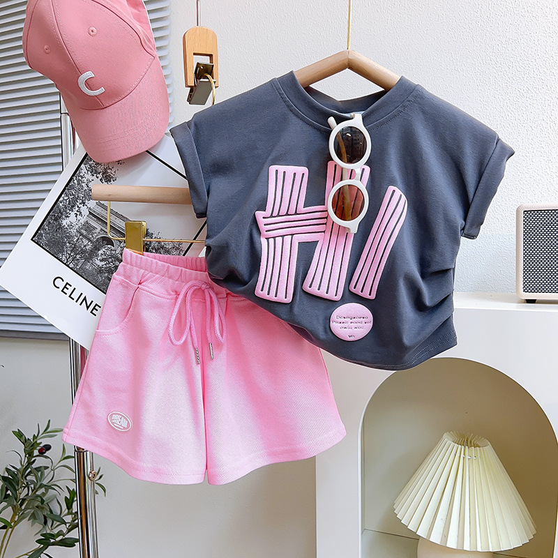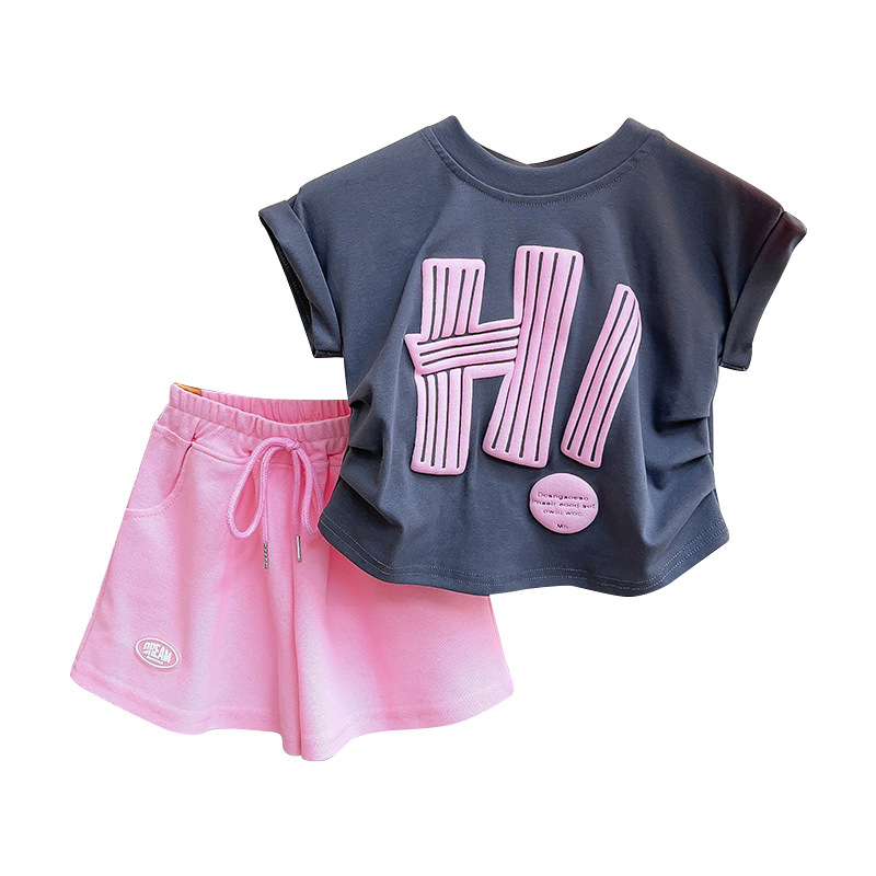 | nameOriginal | Girls' summer casual childlike style H! Printed irregular drawstring slimming suit TX1139 |
