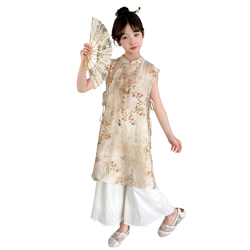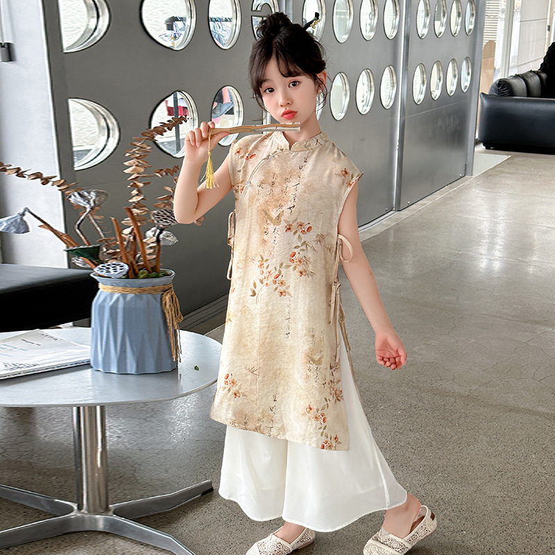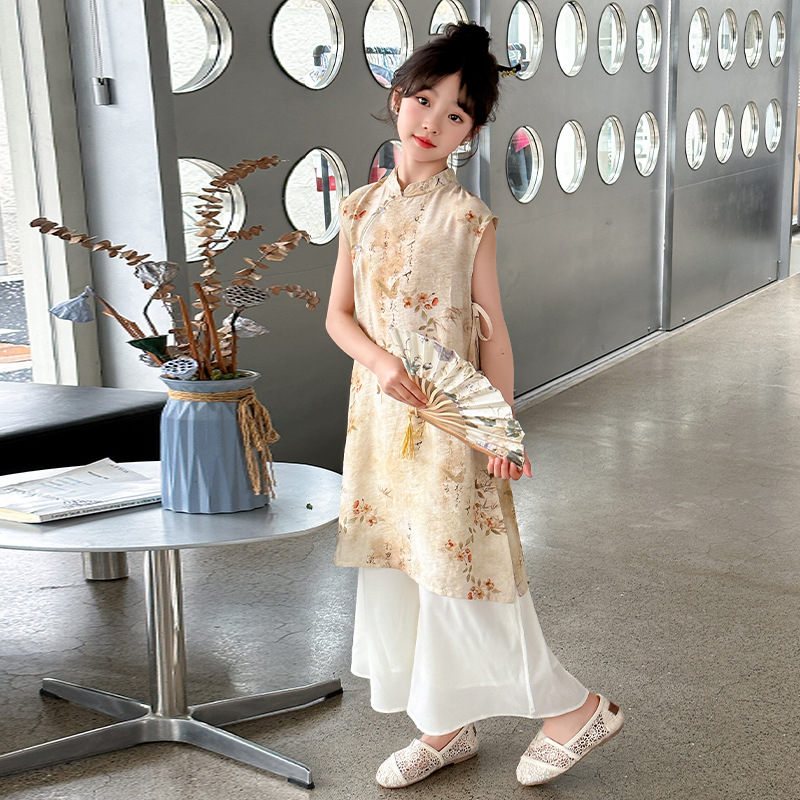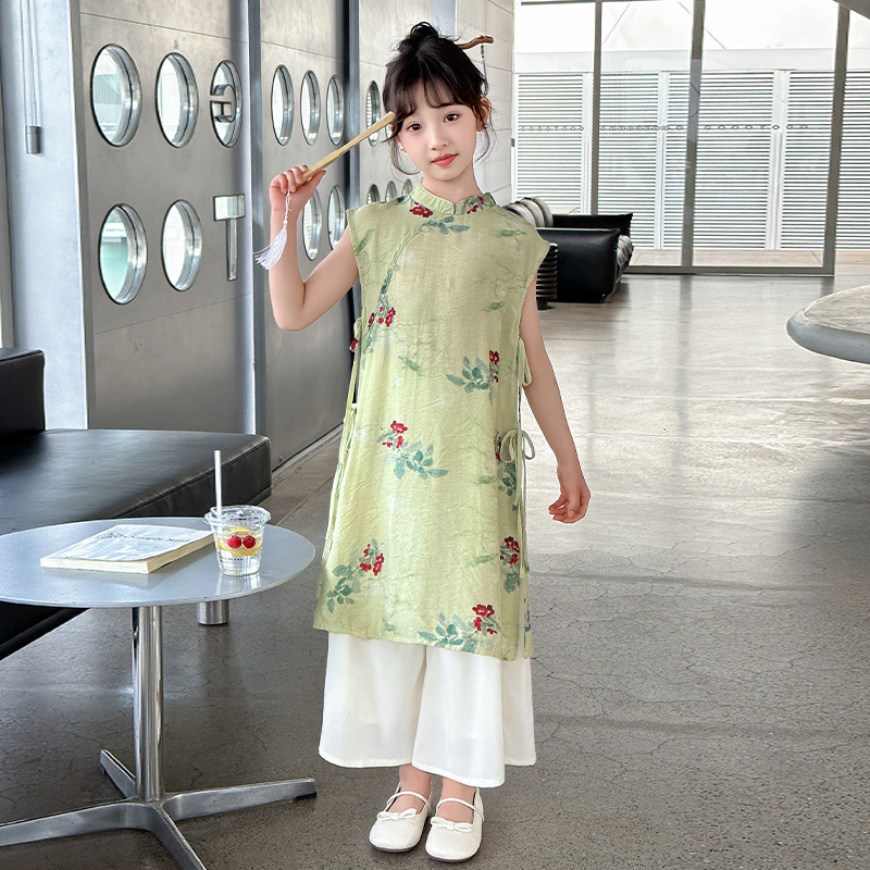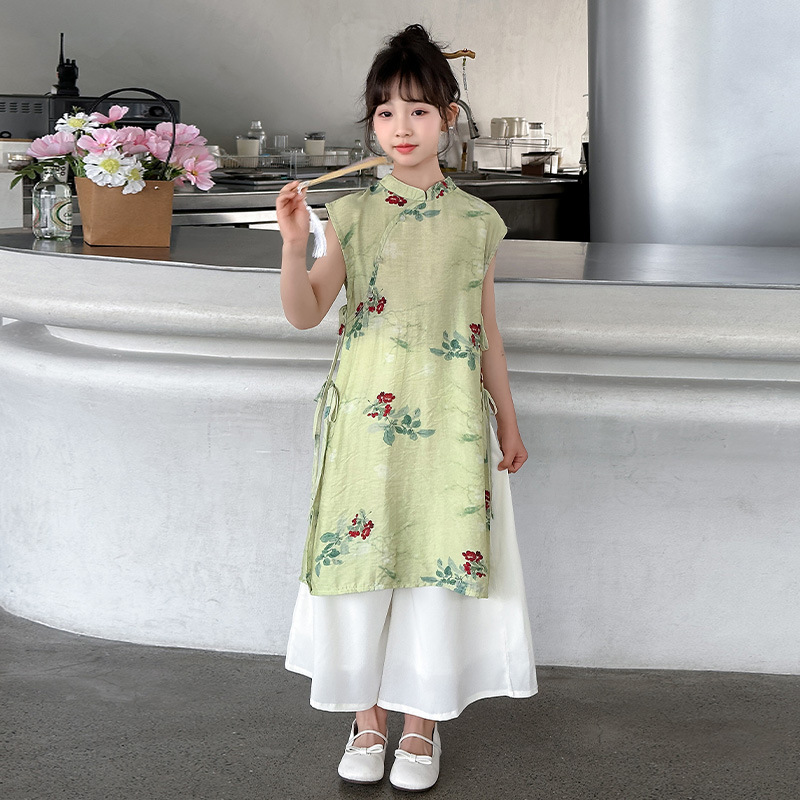 Girls' Summer Cheongsam dress 2024 New Hanfu National Style Girls' New Chinese Style Skirt Children's Summer suit