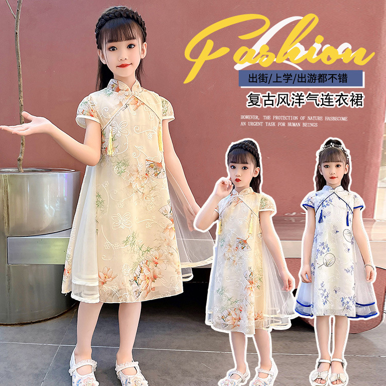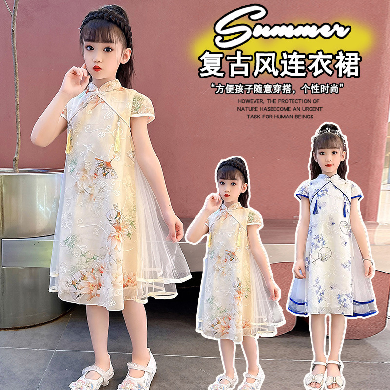 | nameOriginal | Girls' Summer Chinese-style Cheongsam dress 2024 Antique Children's Veil Skirt Chinese-style Short-sleeved Cheongsam Long Skirt |