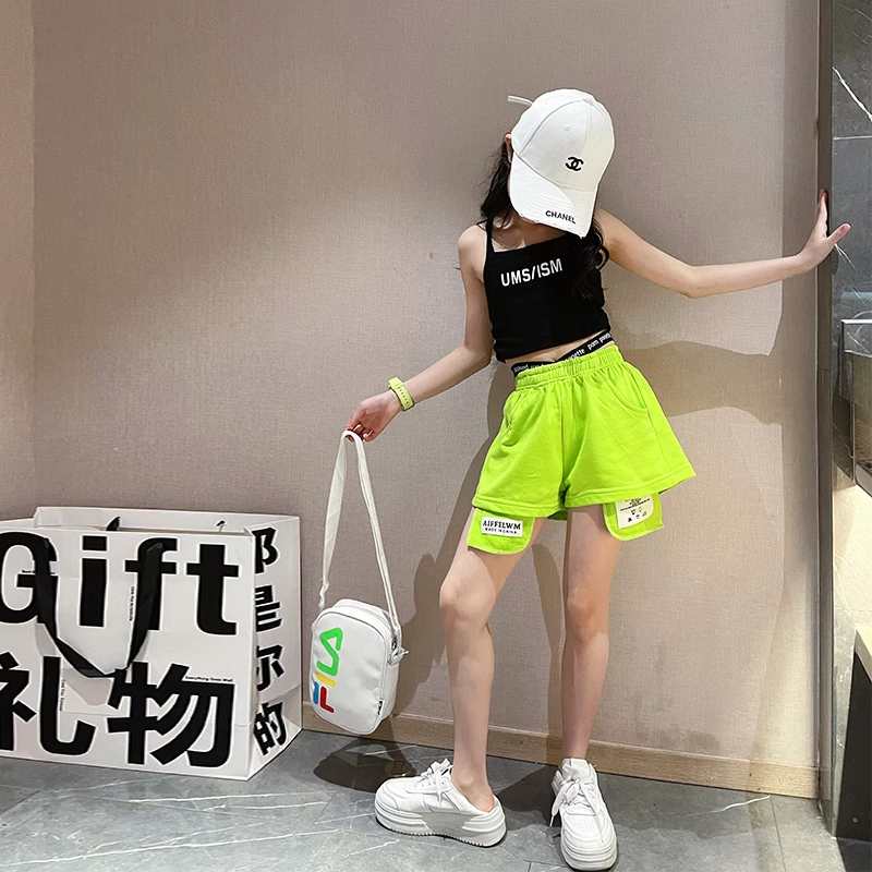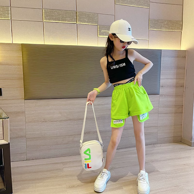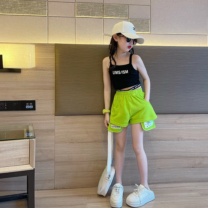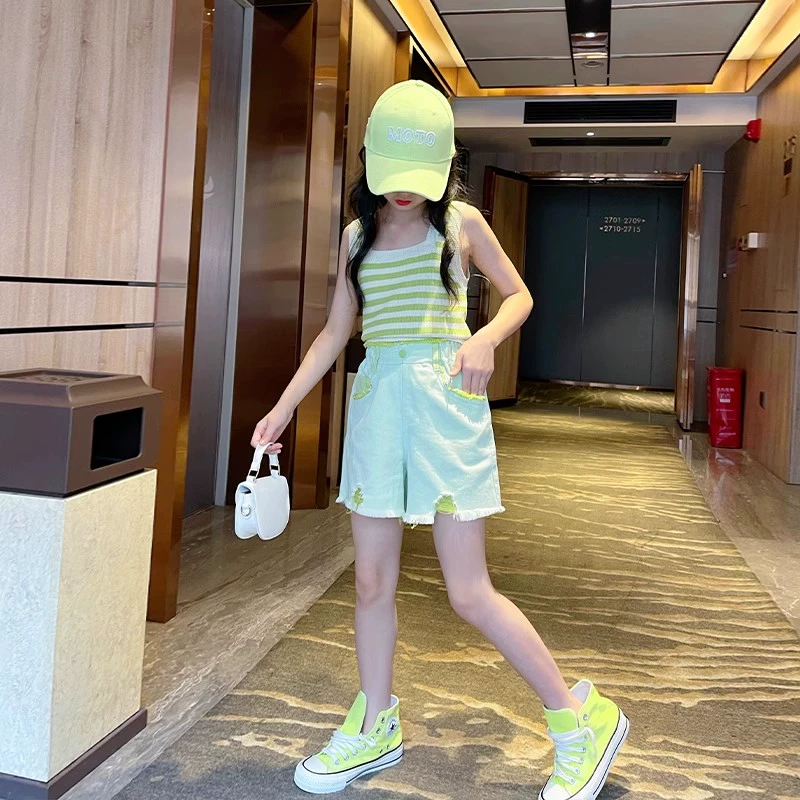 Girls' summer clothes 2024 new set girls' Internet celebrity street vest girls' summer denim shorts two-piece set
