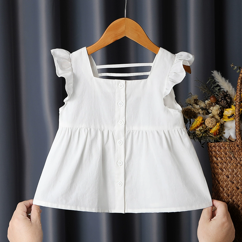 | nameOriginal | Girls summer doll shirt pure cotton style shirt baby girl children's clothing white small flying sleeves Korean style tops for small and medium-sized children |
