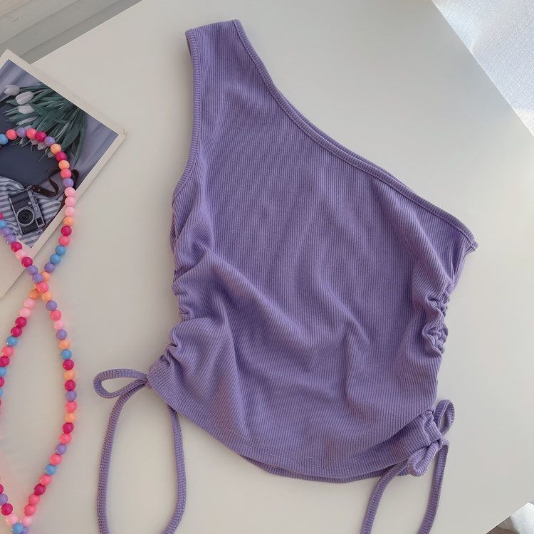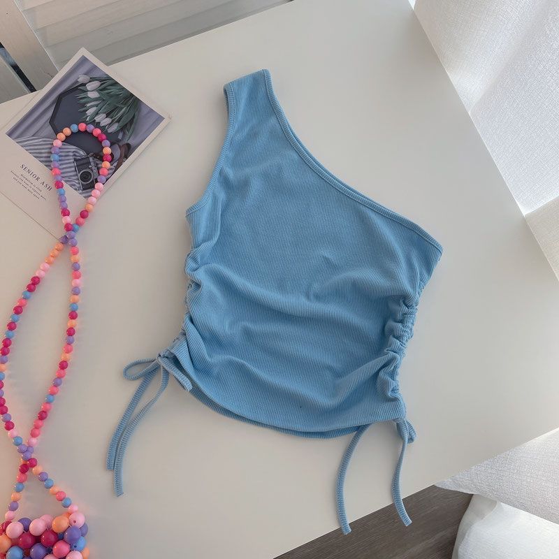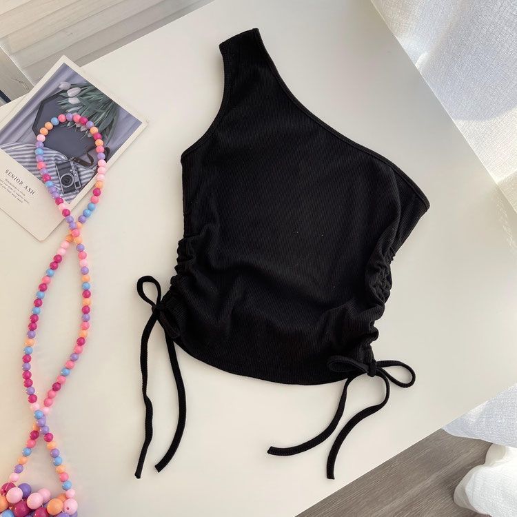 | nameOriginal | Girls' Summer Drawstring Lace-up Oblique Neck Navel Vest 2023 Slim-fit Short Base Shirt Top New 0056 |