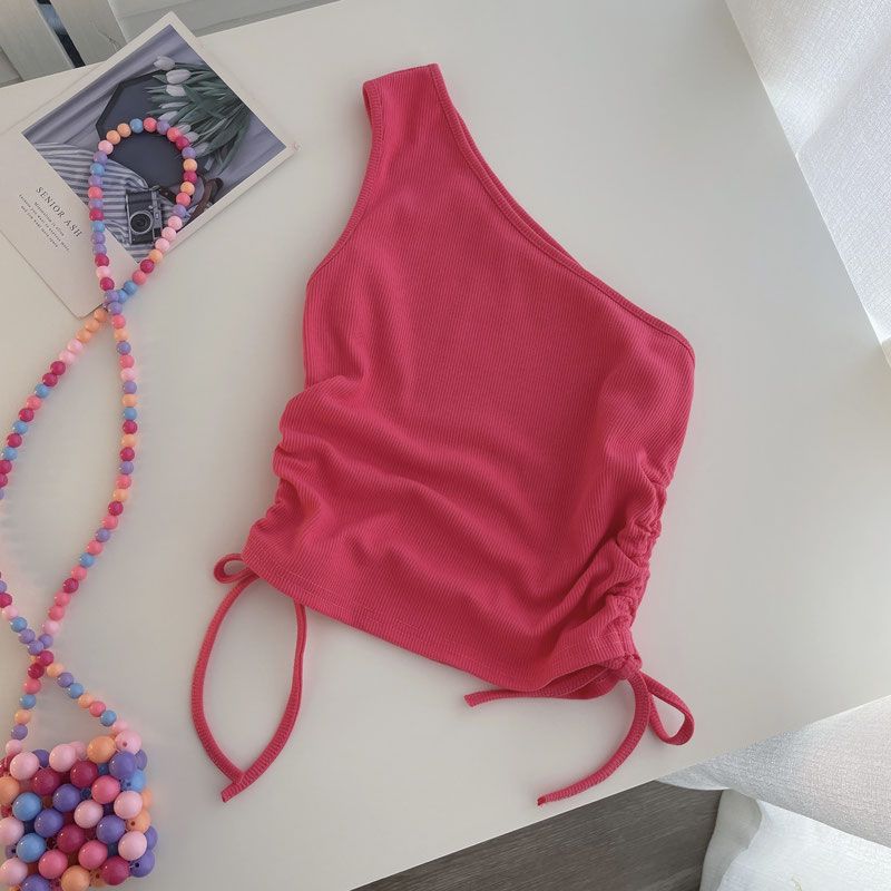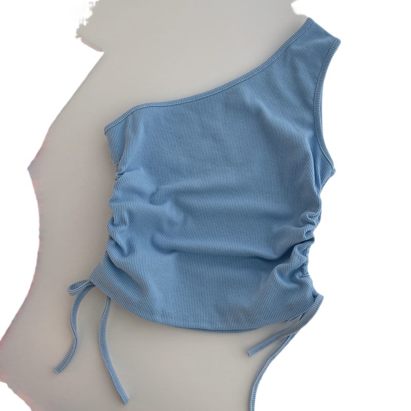 | nameOriginal | Girls' Summer Drawstring Lace-up Oblique Neck Navel Vest 2024 Women's Baby's Slim-fit Short Base Shirt Top New |