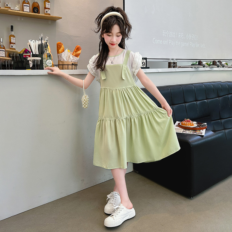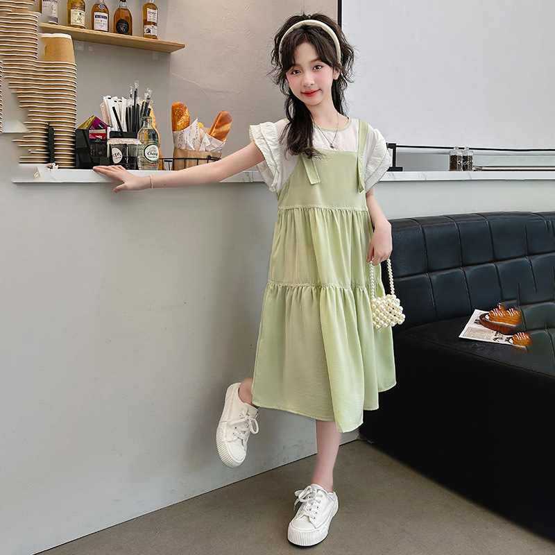 | nameOriginal | Girls' Summer dress 2024 New Big Boy Korean Style Fake Two-piece Flying Sleeve Tencel Chiffon Dress Girls Princess Dress |