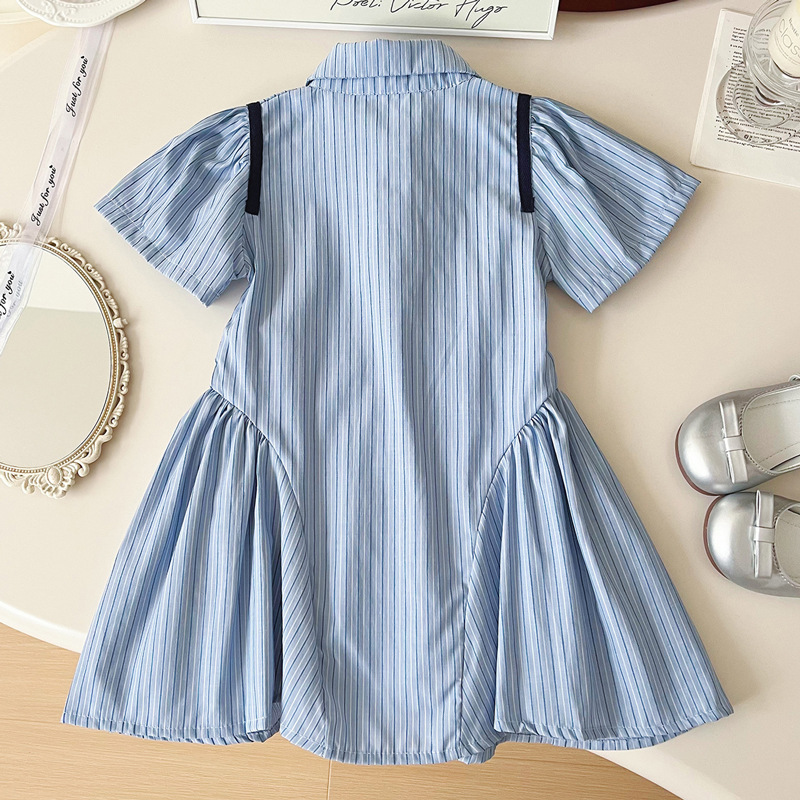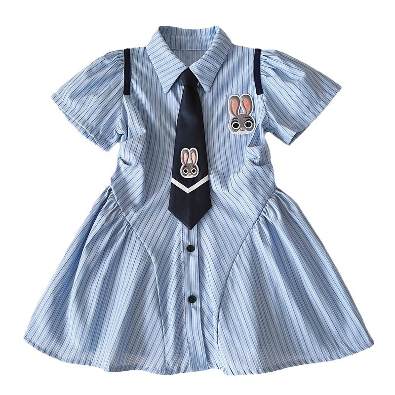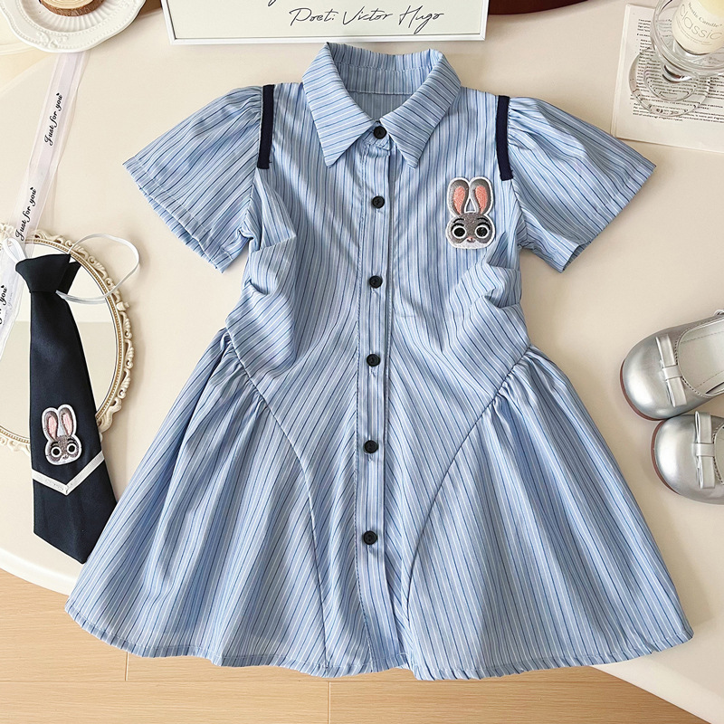 | nameOriginal | Girls Summer dress 2024 New Bunny Police Officer Little Girl POLO Collar Striped College Style Shirt Skirt |