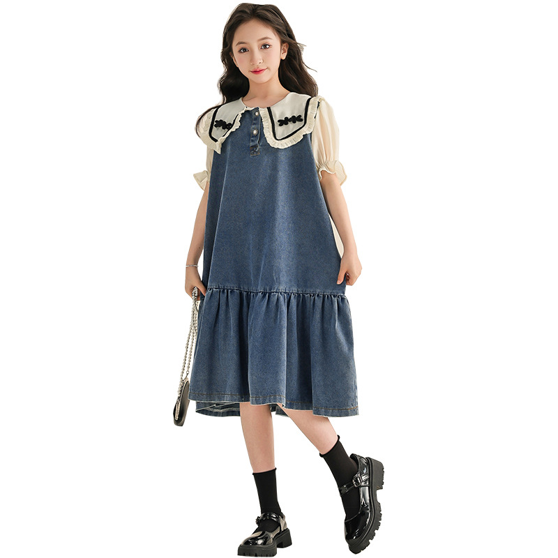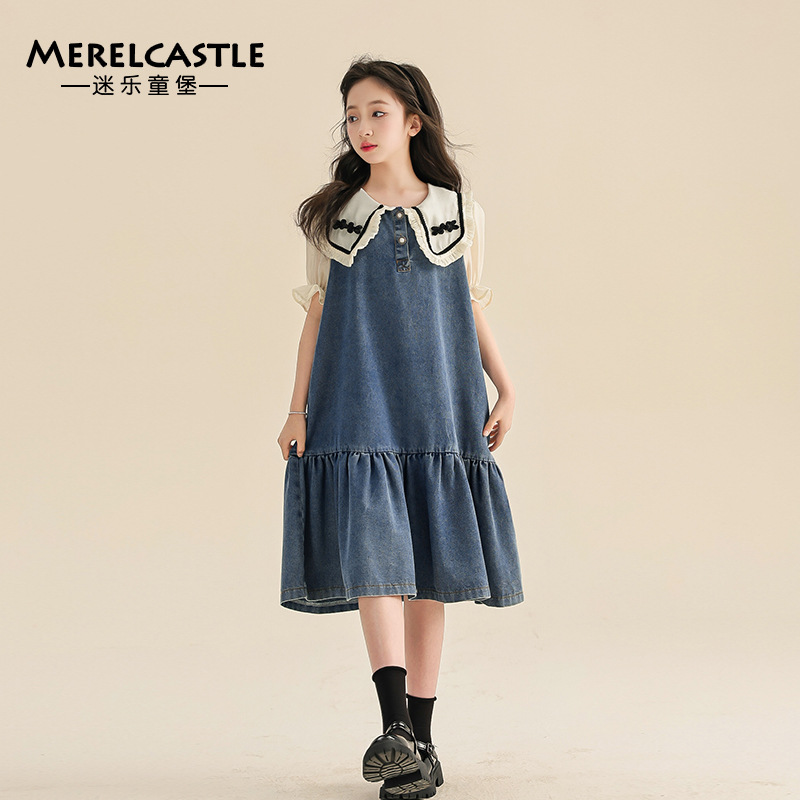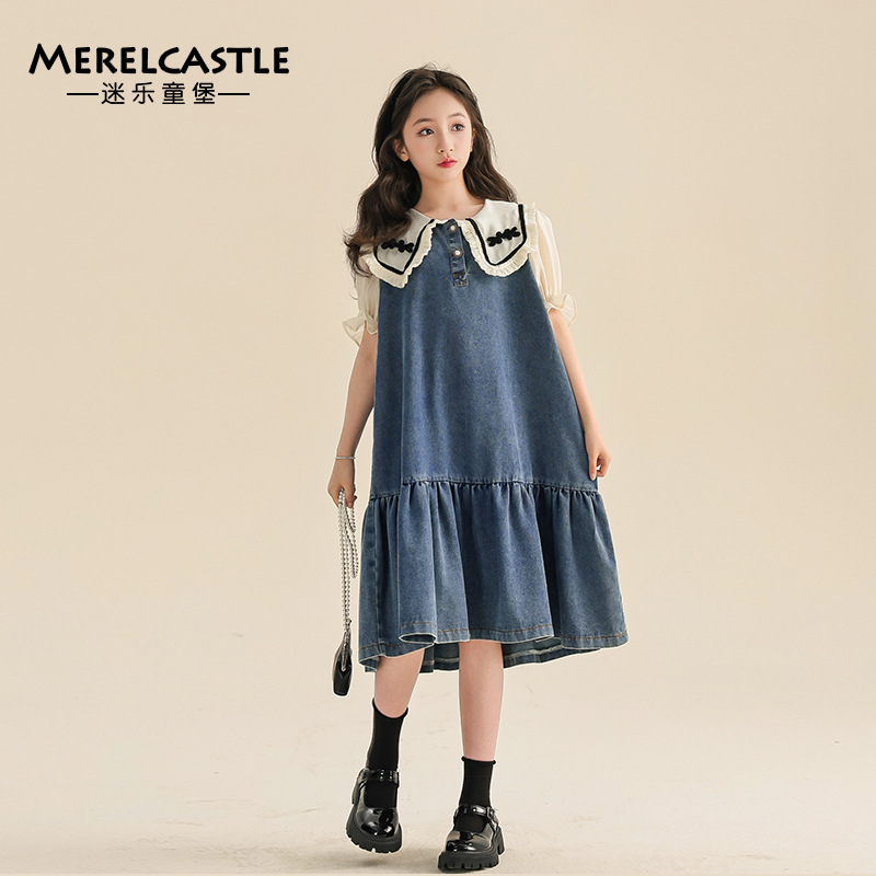 | nameOriginal | Girls' Summer Dress 2024 New Children's Western-style High-end Denim Skirt Big Children's Summer Dress Small Chanel Style Skirt |