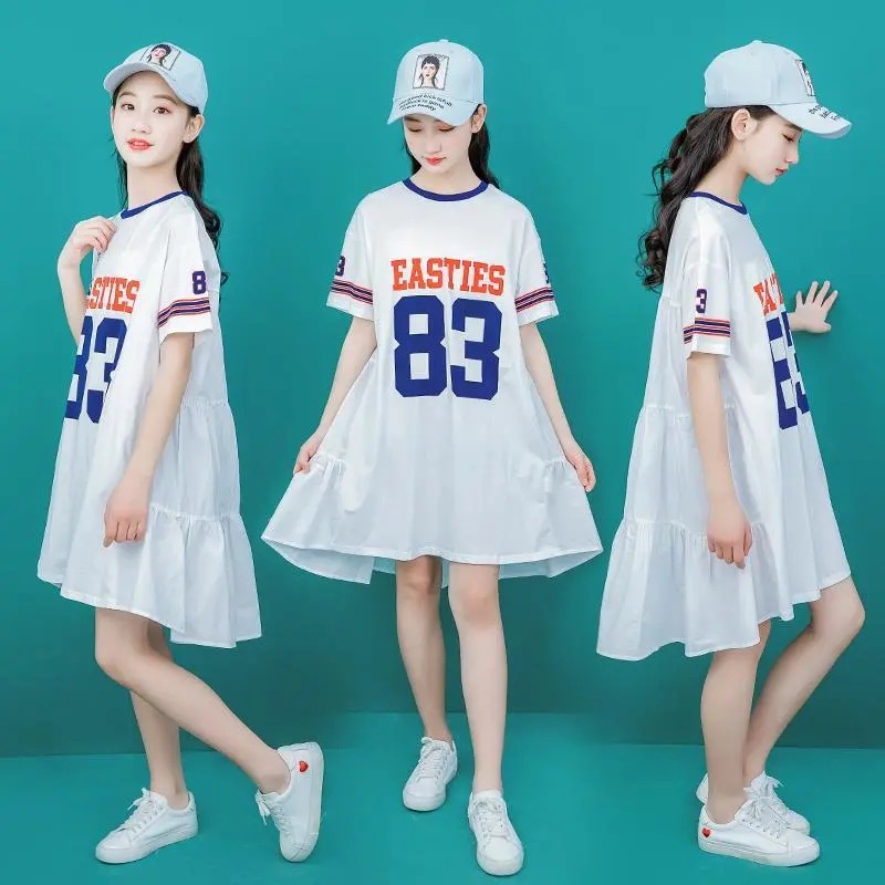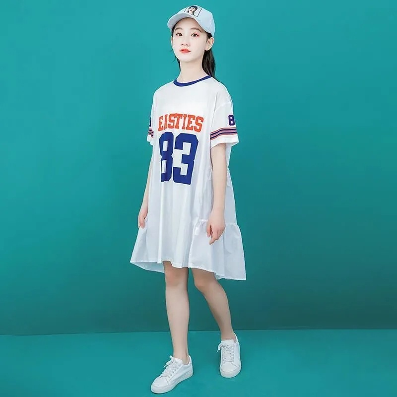 | nameOriginal | Girls' Summer Dress New Style Girl's Short-sleeved T-shirt Dress Loose Sports Street Dance Skirt for Primary and Secondary School Students |