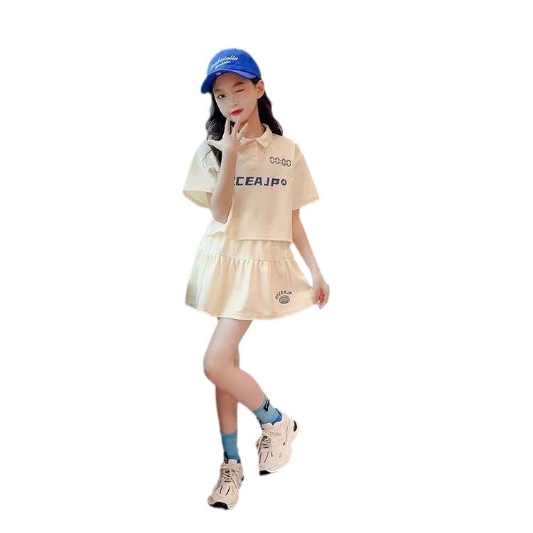 | nameOriginal | Girls' summer dress suit 2024 New Western style children's suit skirt medium and big children girls' fashionable college style skirt set |