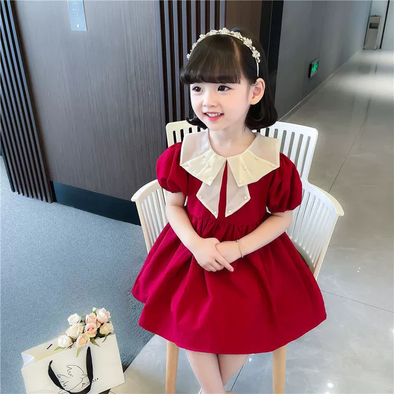 | nameOriginal | Girls summer fashionable red doll collar dress |