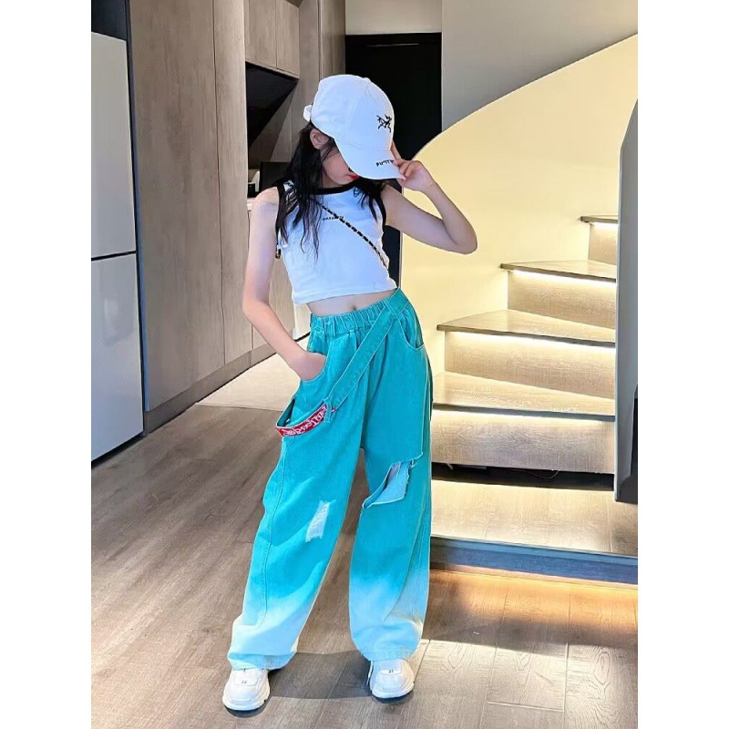 | nameOriginal | Girls' Summer Gradient Jeans 2024 New Style Summer Western Style Children's Internet Celebrity Street Ripped Wide-leg Trendy Pants |