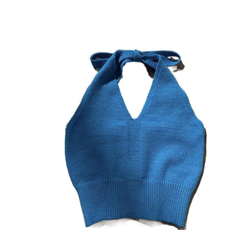 | nameOriginal | Girls' summer Hong Kong style halter knitted sling outer wear short solid color vest halter top beauty back 0158 |