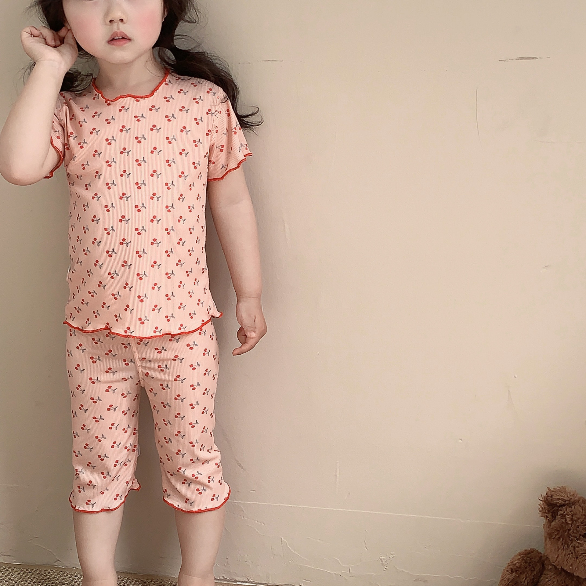 | nameOriginal | Girls summer ice silk floral short sleeve suit children boneless lace collar home clothes baby thin air conditioning clothes wholesale |