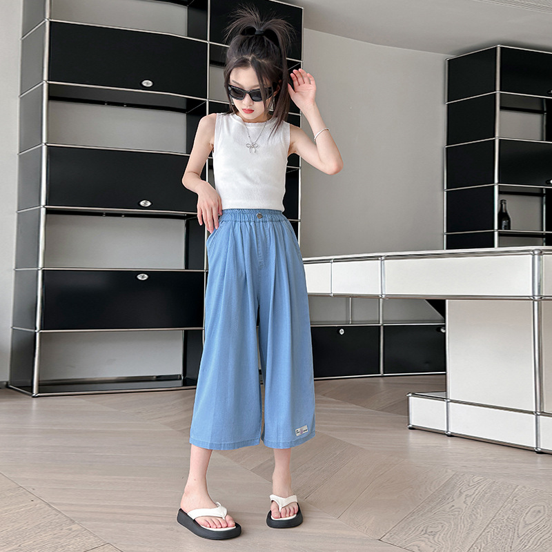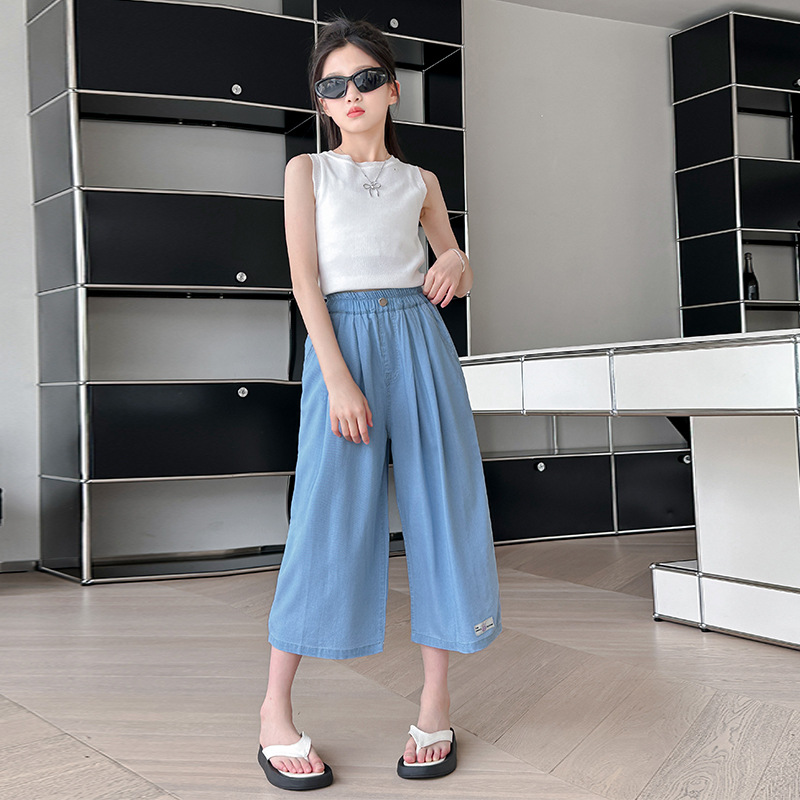 | nameOriginal | Girls' Summer Jeans 2024 New Korean Style Medium and Large Children's Lightweight Breathable Tencel Denim Loose Cropped Trendy Pants |