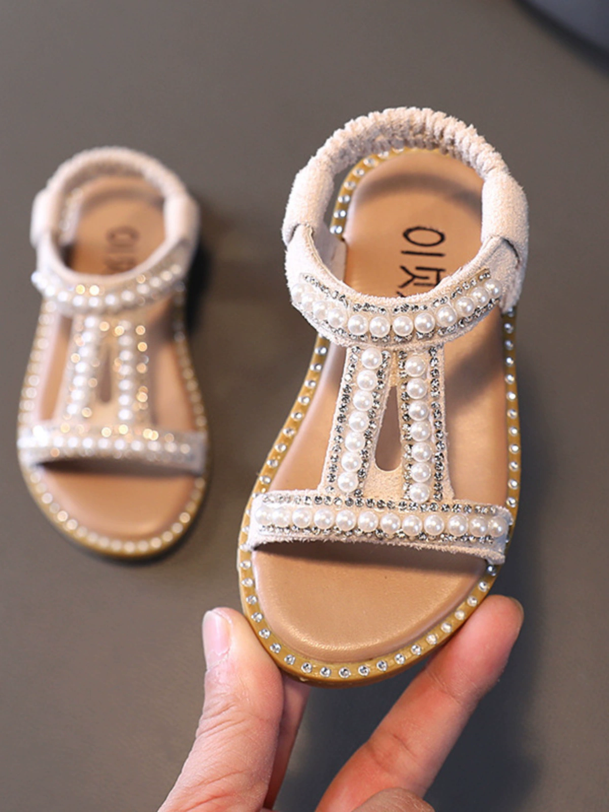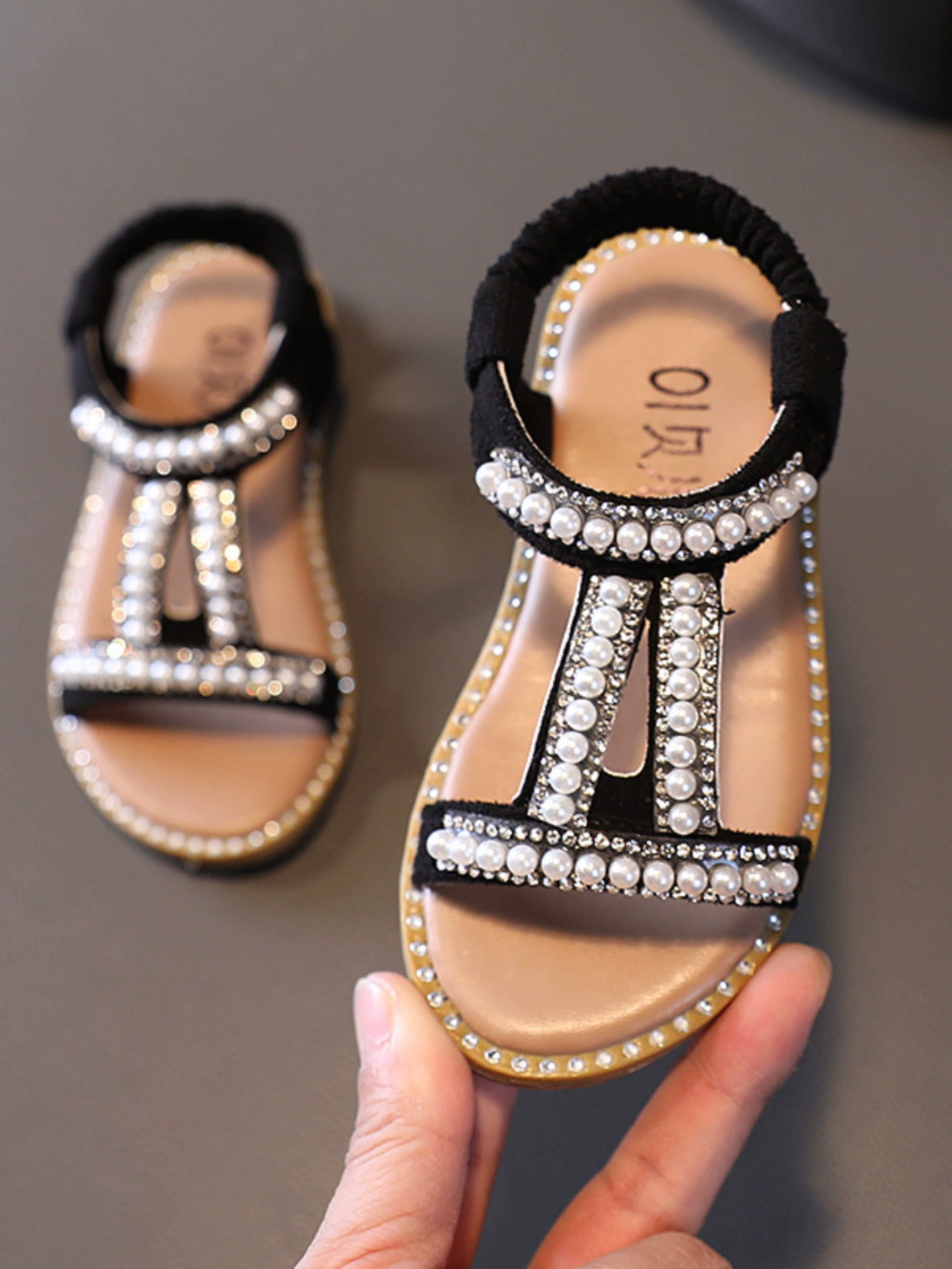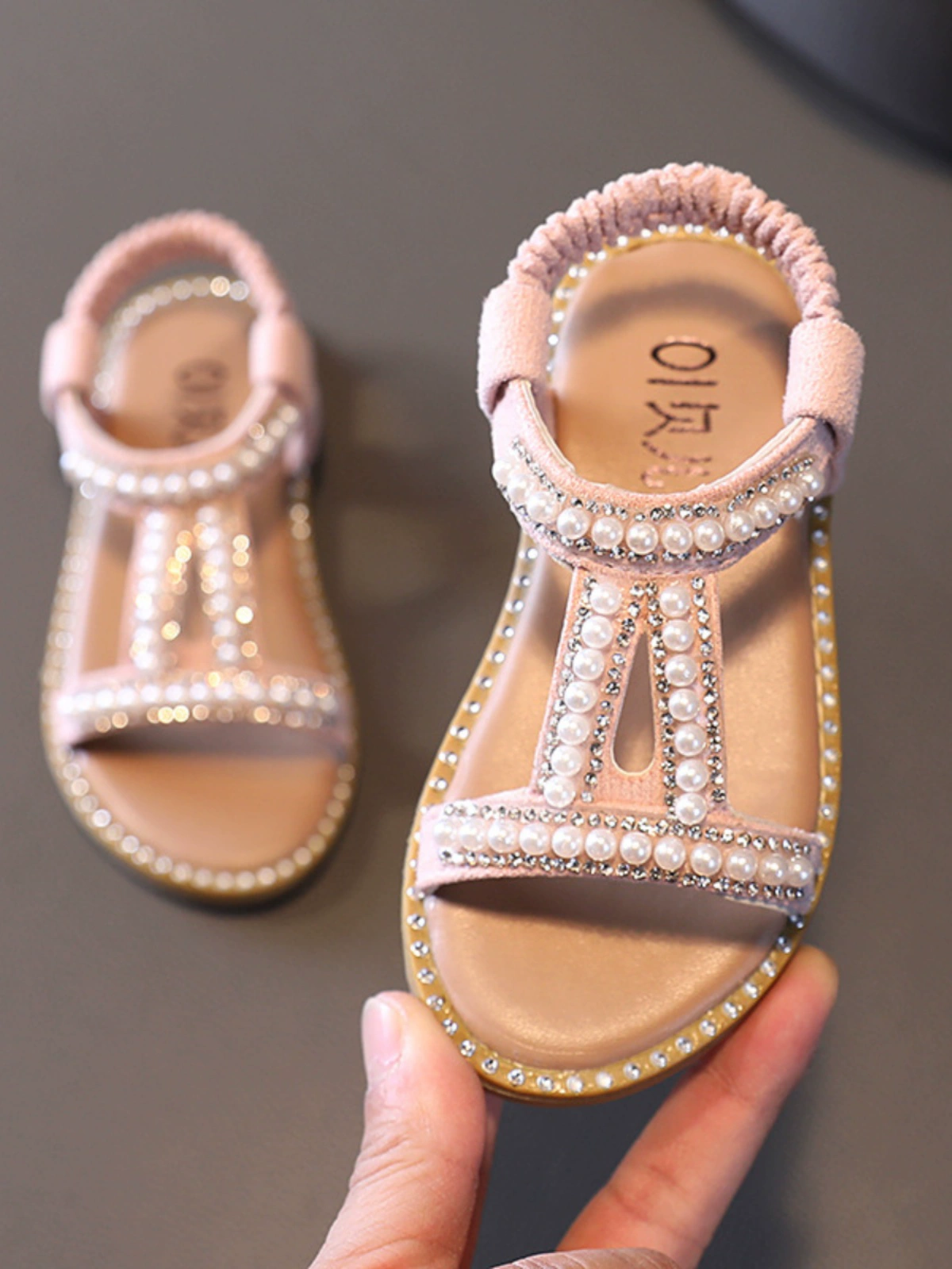 | nameOriginal | Girls summer Korean style open-toe Roman shoes with pearls and diamonds |