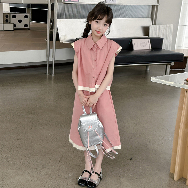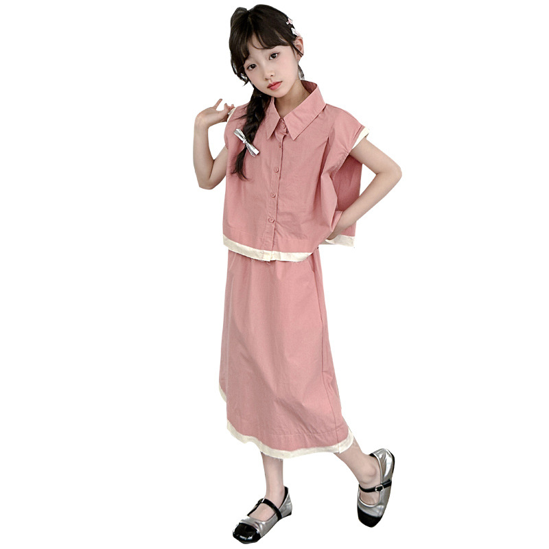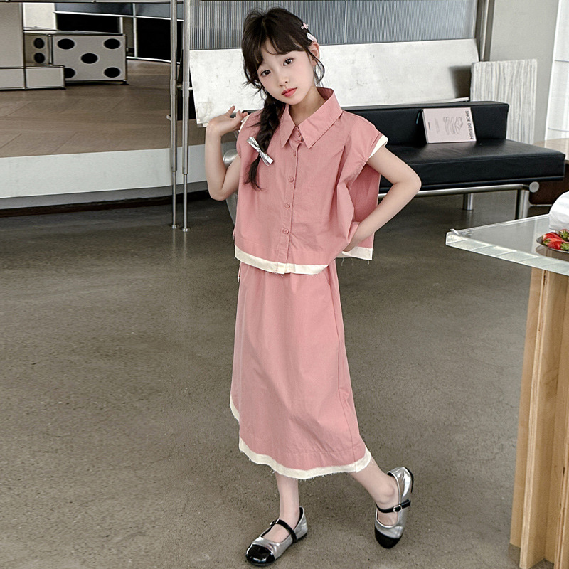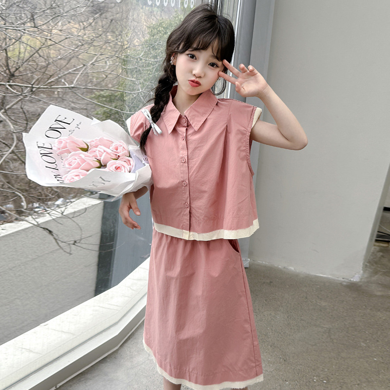 | nameOriginal | Girl's Summer Korean Style Sweet Solid Color Shirt Vest Skirt suit 2024 New Style Girl's Fashionable Two-Piece Set |