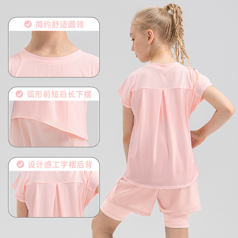 | nameOriginal | Girls' Summer Loose Cool Yoga T-shirt Quick-drying Breathable Outdoor Sports Top for Fitness Running Short-sleeved 33210 |