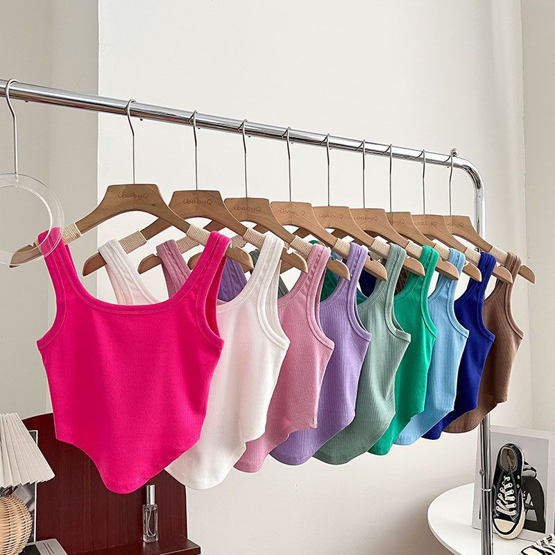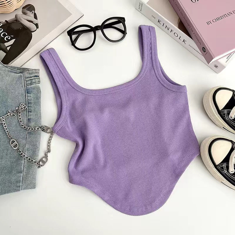 Girls' Summer New Arrival Fashionable All-Match Irregular Short Camisole Inner Base Shirt Top 0015A014