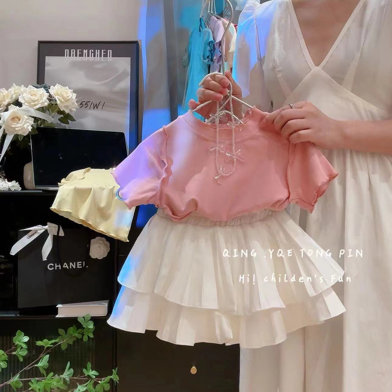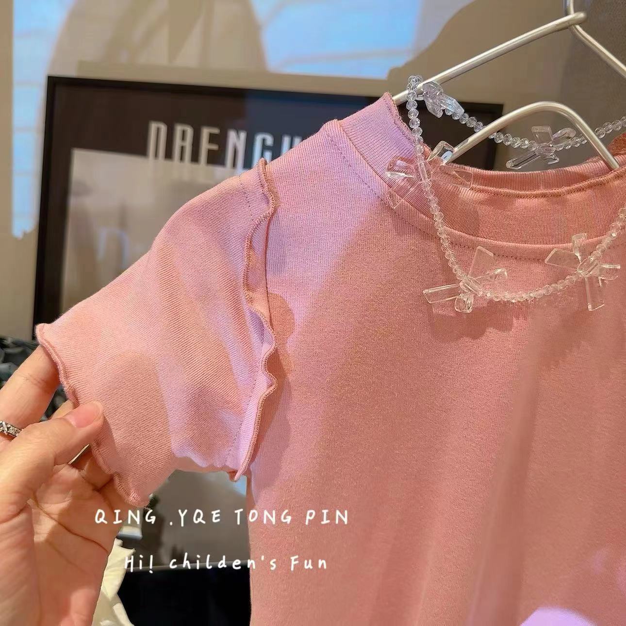 Girl’s Summer New Candy Color Bottoming Girl’s Baby’s Summer Western Style All-match Ins Style Solid Color Short-sleeved Top