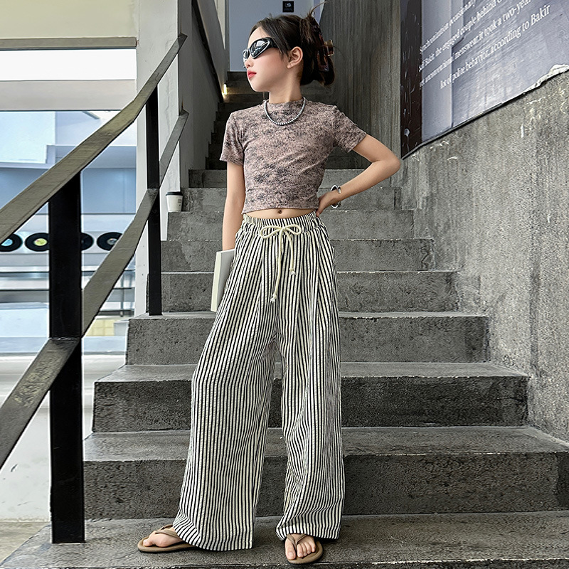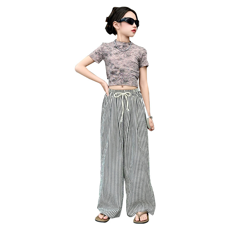 | nameOriginal | Girls' Summer New Internet Celebrant Short-sleeved suit Tie-dyed Top 2024 Korean Casual Crock Pants Summer Two-piece Set |