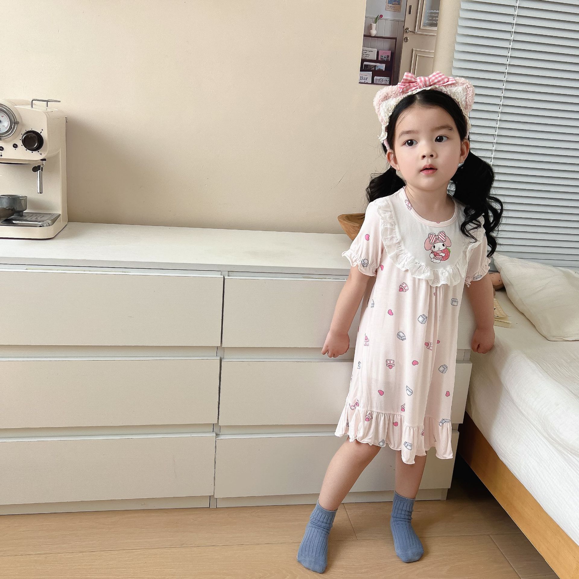 | nameOriginal | Girls Summer New Short-sleeved Long Dress Children's Baby Lace Princess Dress Summer Home Dress Nightdress |