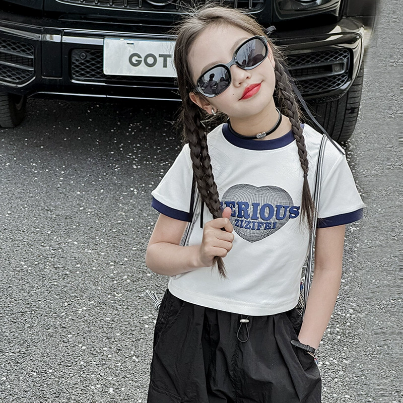 Girls' summer overalls, short-sleeved T-shirts, medium and large children's new suits, children's style half-sleeved quick-drying summer pants