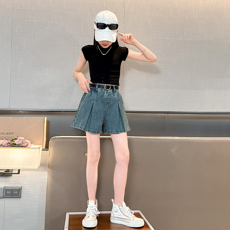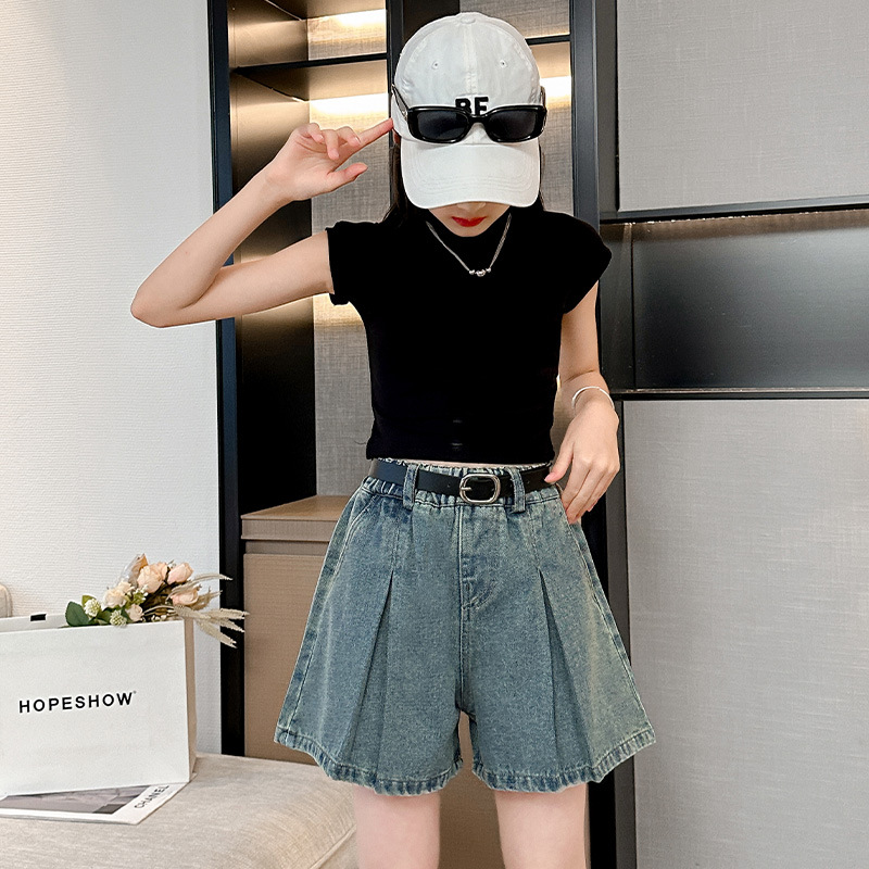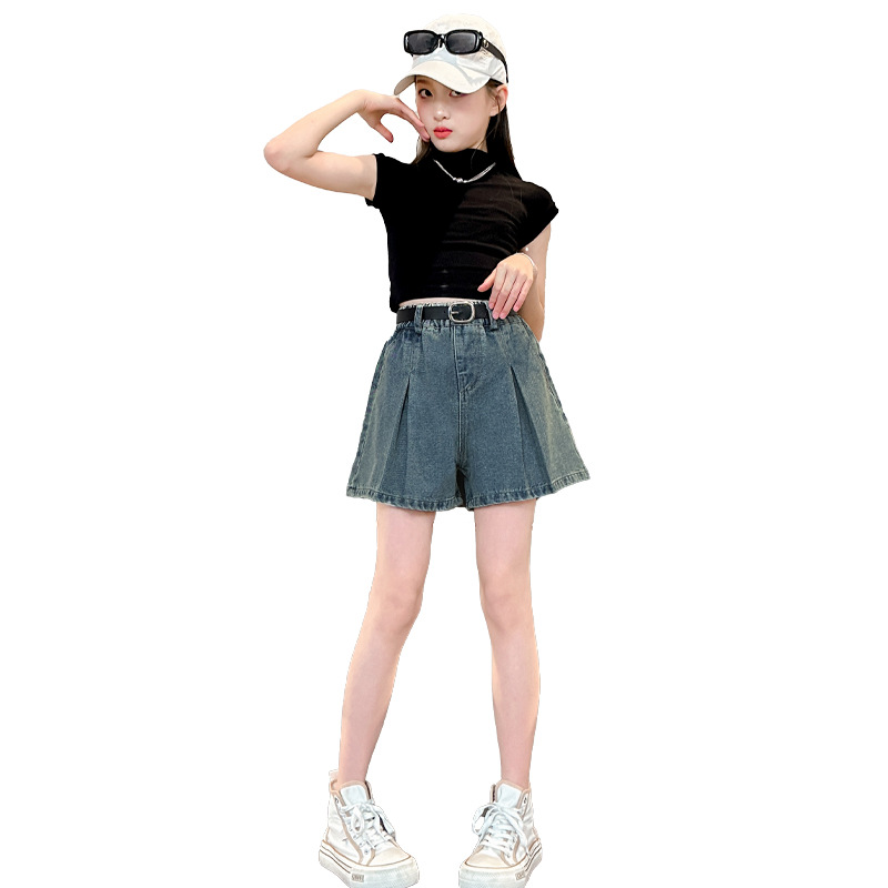 | nameOriginal | Girls' Summer Pants 2024 New Korean Style Middle and Large Children's Thin High Waist Denim Culottes Fashionable Loose Shorts Trendy |