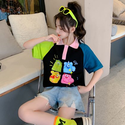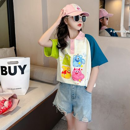 | nameOriginal | Girl's Summer Polo Shirt 2024 New Arrival Fashionable Girl's Summer Cartoon Loose Top Lar Children's T-shirt Trendy |