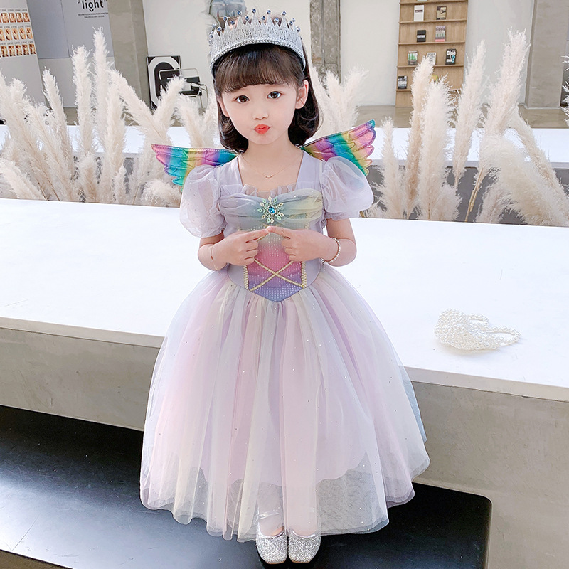| nameOriginal | Girls' Summer Princess Dress Children's Summer Dress Korean Style Western Style Rainbow with Wings Mid-length Tulle Skirt |