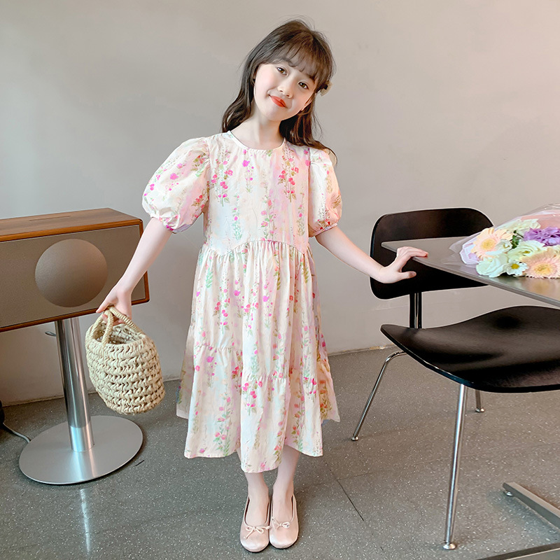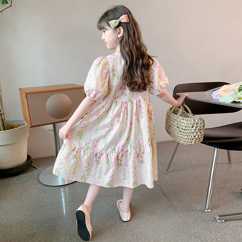 | nameOriginal | Girls' Summer Puff Sleeve dress 2024 New Arrival Big Boy Korean Style Stylish Floral Skirt Fashionable Princess Dress |