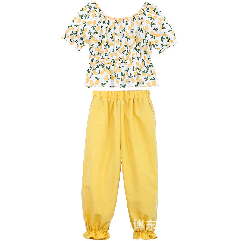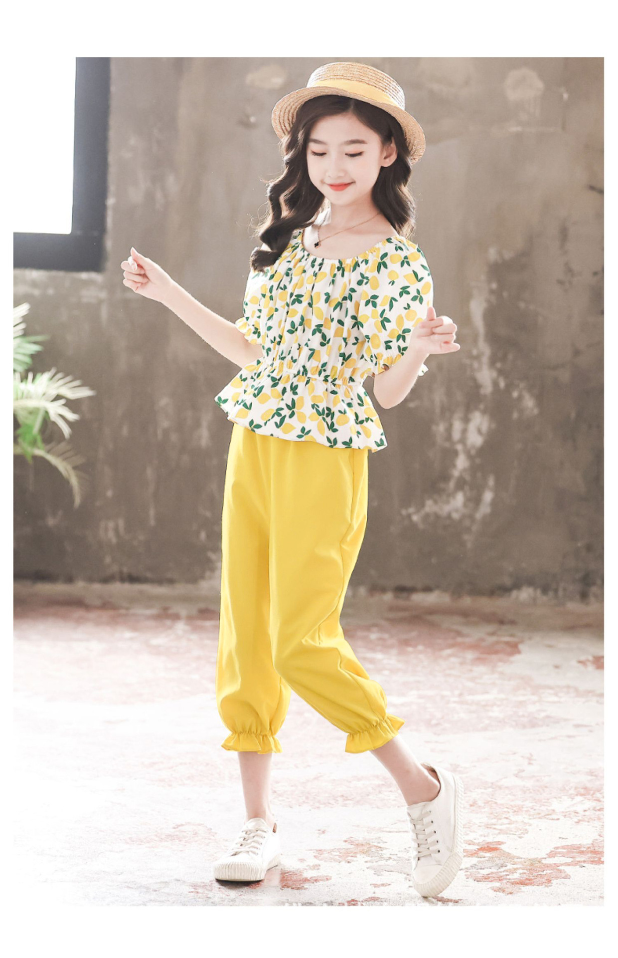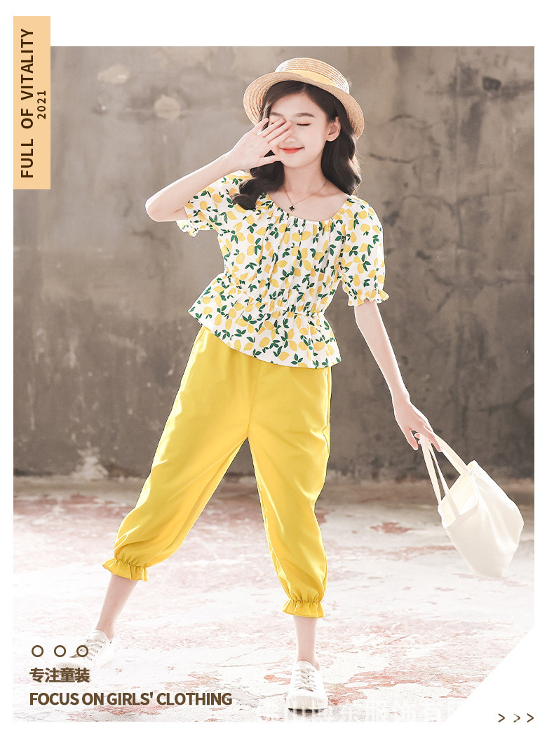 Girls' Summer Set Short-sleeved Floral Shirt Casual Pants Red Fashionable Two-piece Set Girls Comfortable Sports Suit