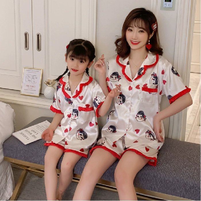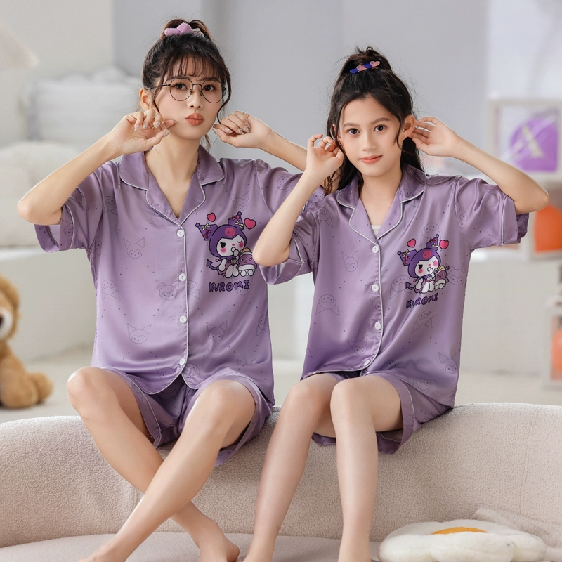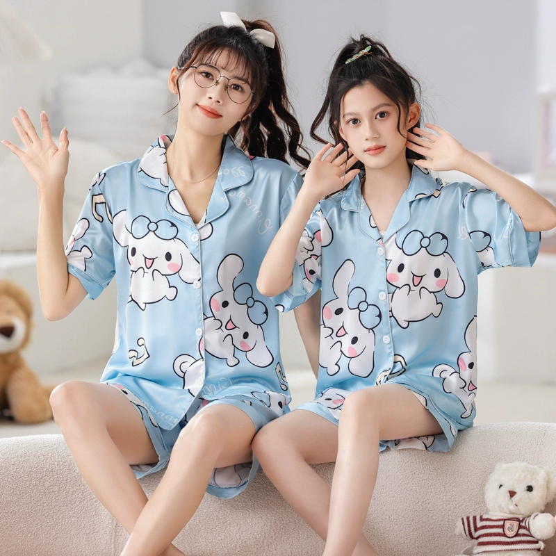Girls summer short-sleeved ice silk parent-child air-conditioned pajamas