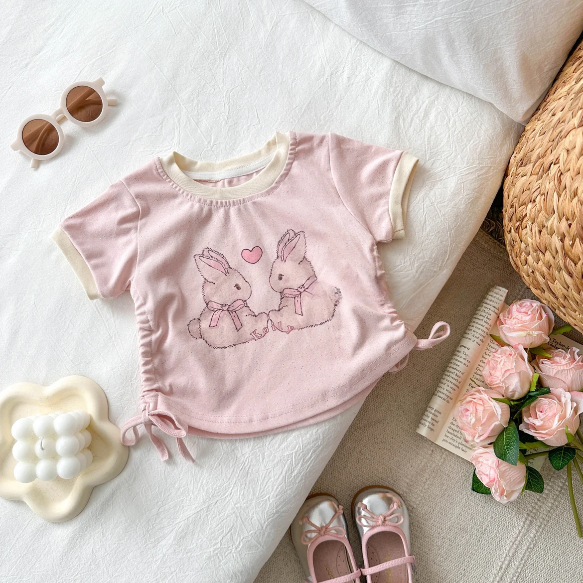 | nameOriginal | Girls summer short-sleeved Korean version 2024 new children's solid color cartoon T-shirt baby girl drawstring half-sleeved top trendy t |