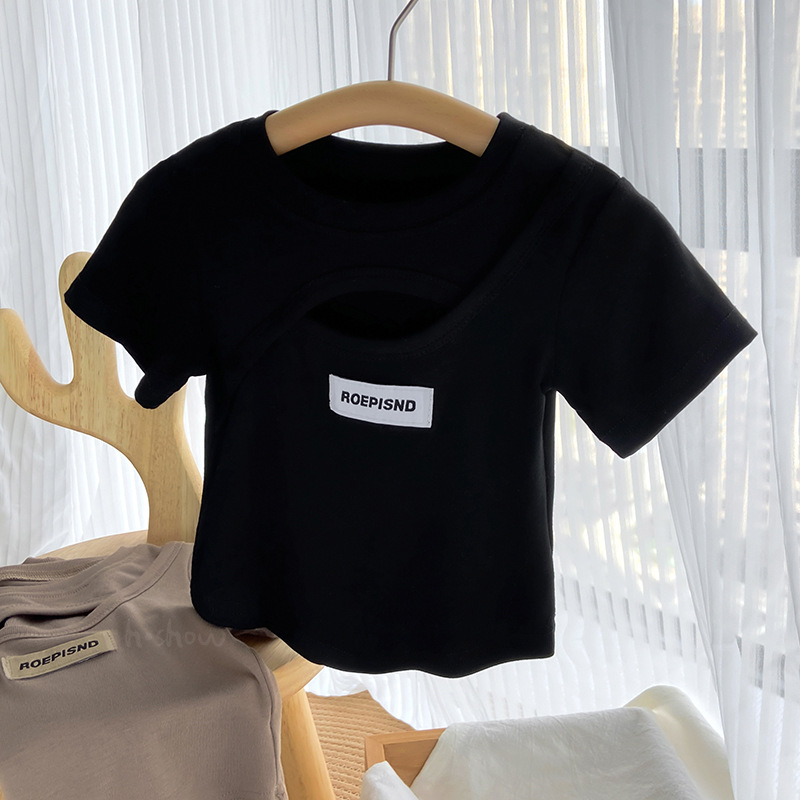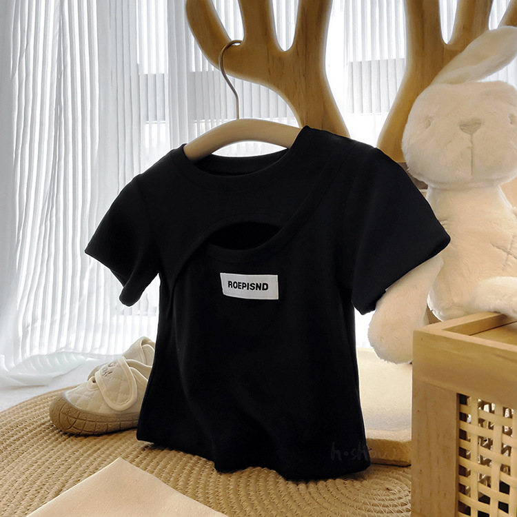 | nameOriginal | Girls' summer short-sleeved medium and small children's western style slim top 2023 new fashionable hollow short women's summer 0187 |