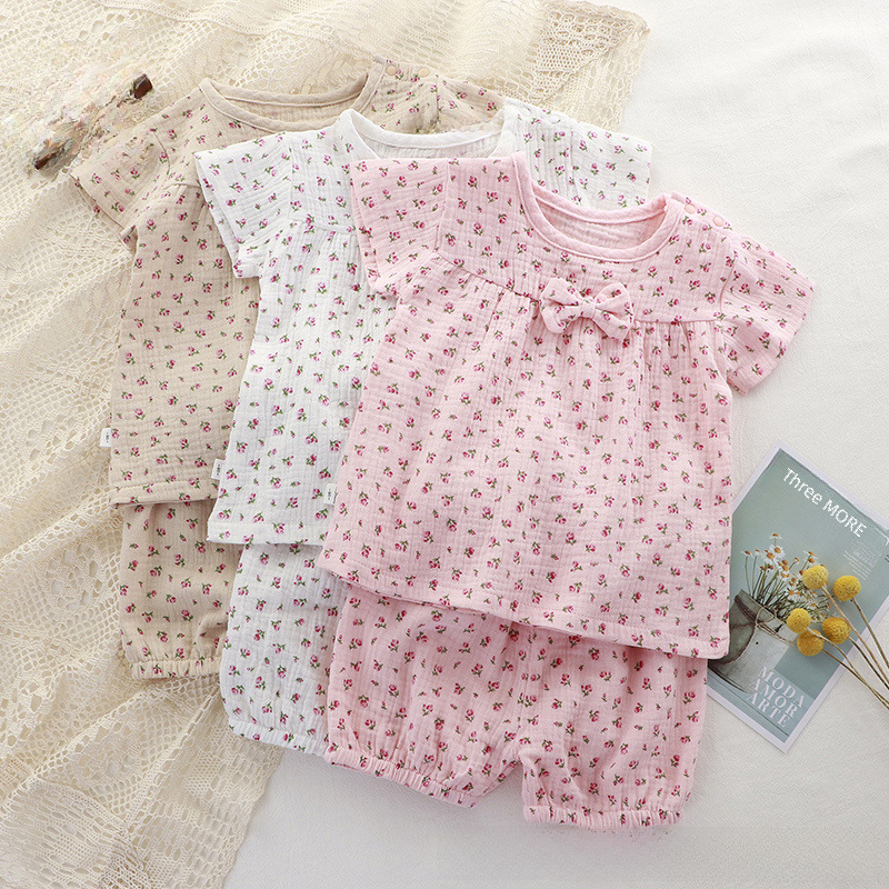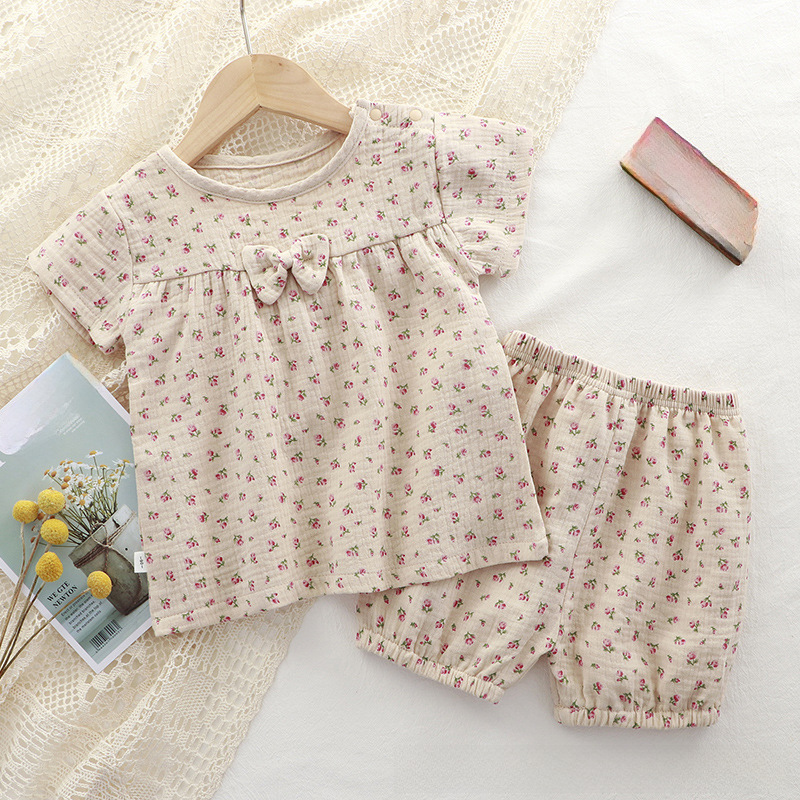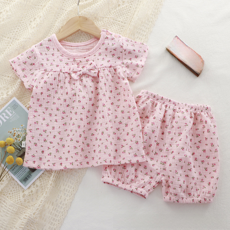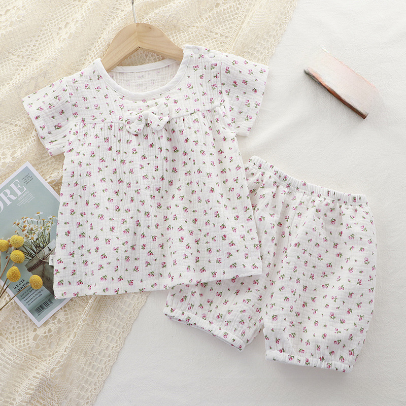 | nameOriginal | Girls' Summer Short-sleeved Set Printed Gauze Baby Girls' New Style Pajamas Comfortable Cute Breathable Girls' Two-piece Set |