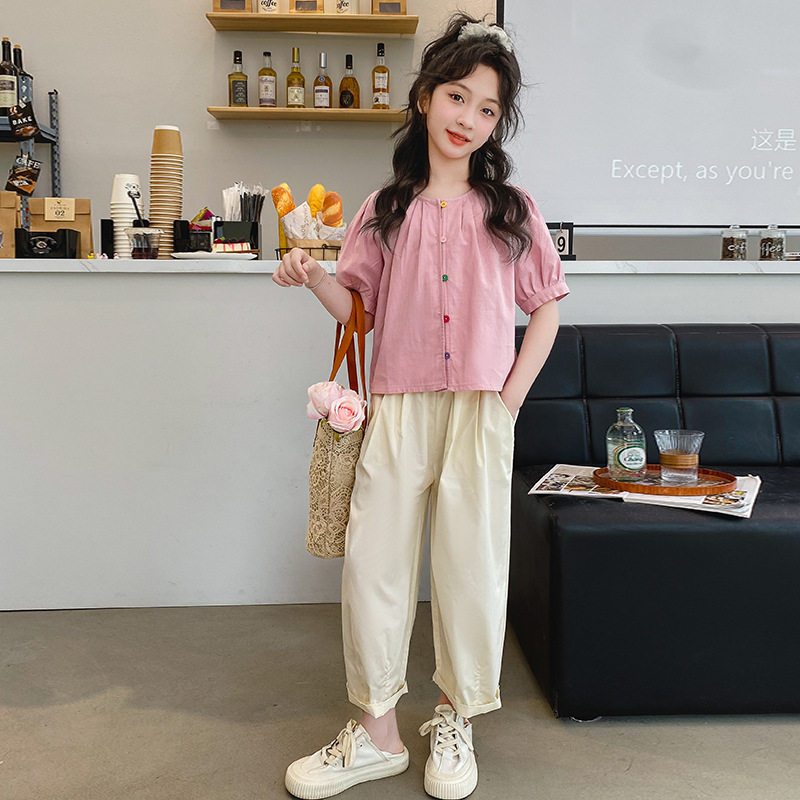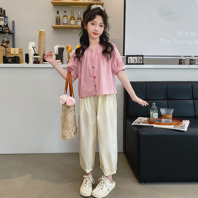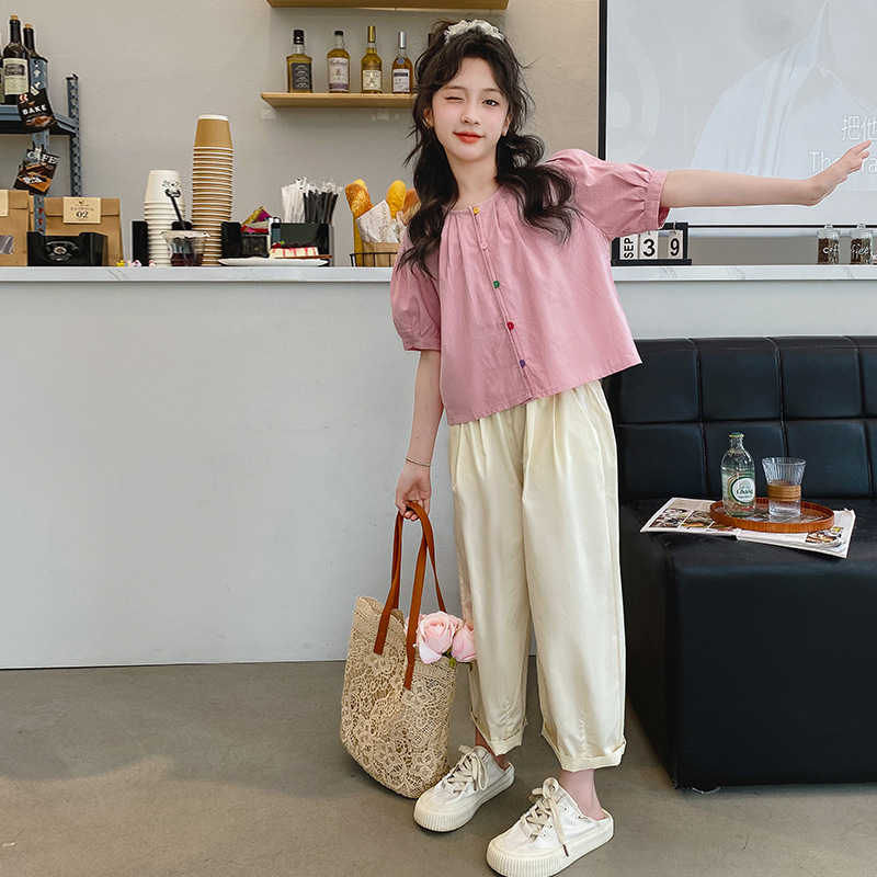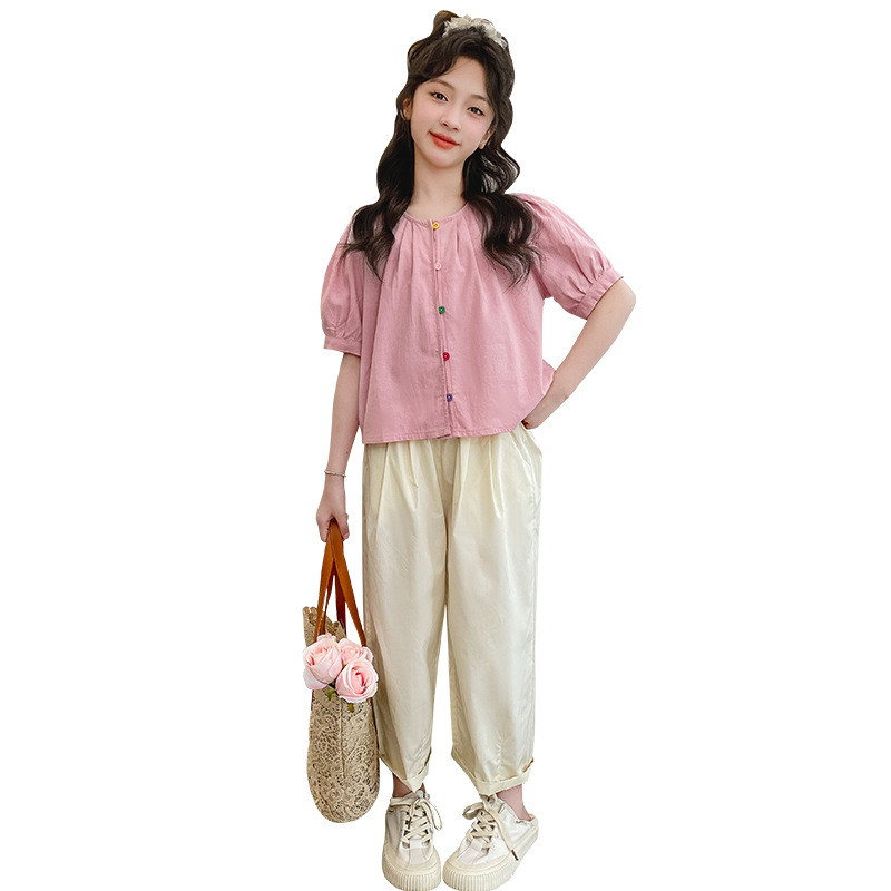 | nameOriginal | Girls' Summer Short-sleeved suit Casual Thin Summer Children's Big Girls' Flying-sleeved Shirt Trousers Wide-leg Pants Cotton and Linen |