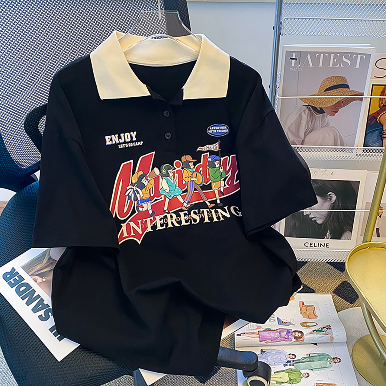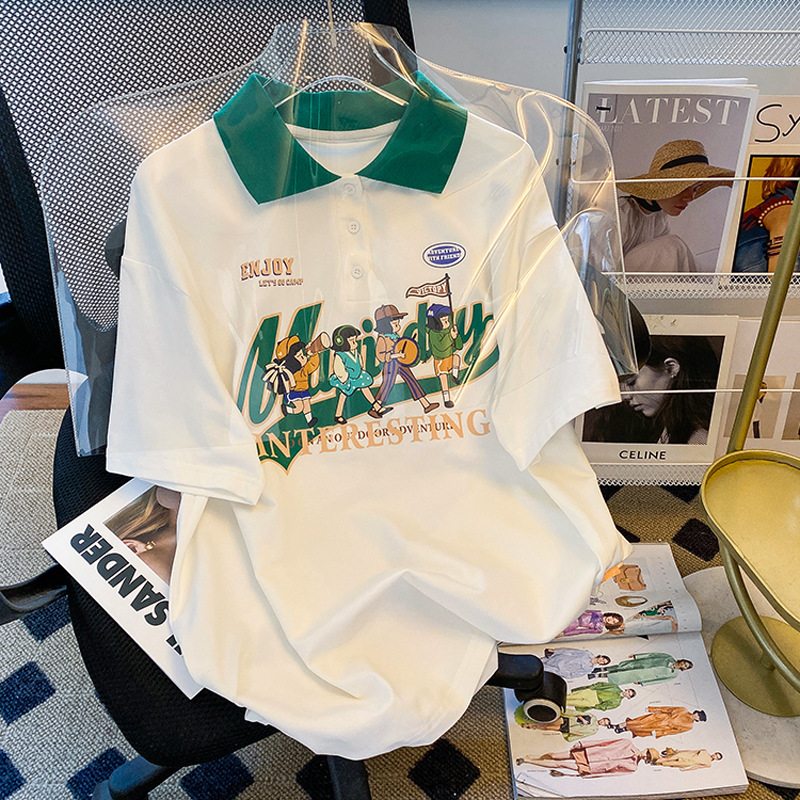 | nameOriginal | Girls' Summer Short-sleeved T-shirt 2023 New Double Yarn Cotton Polo Shirt Retro Loose Mid-summer All-match Top |