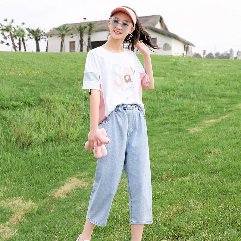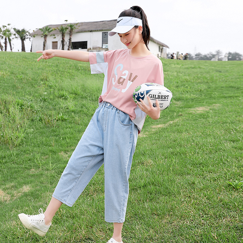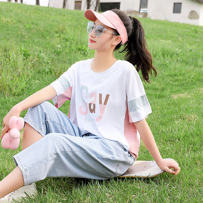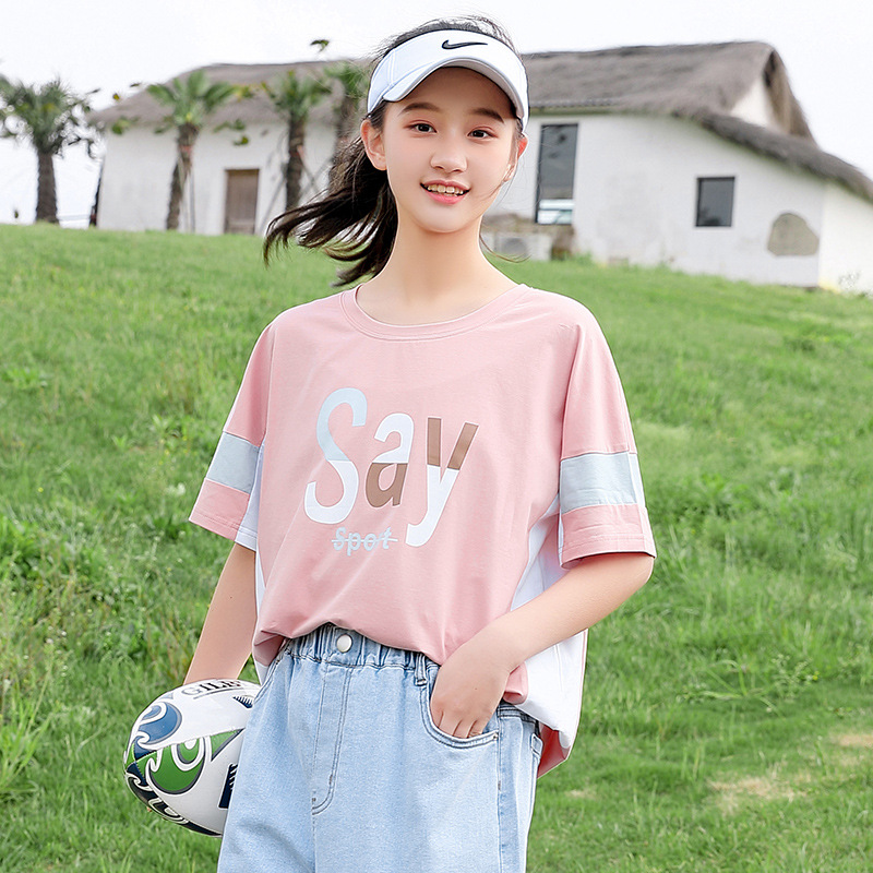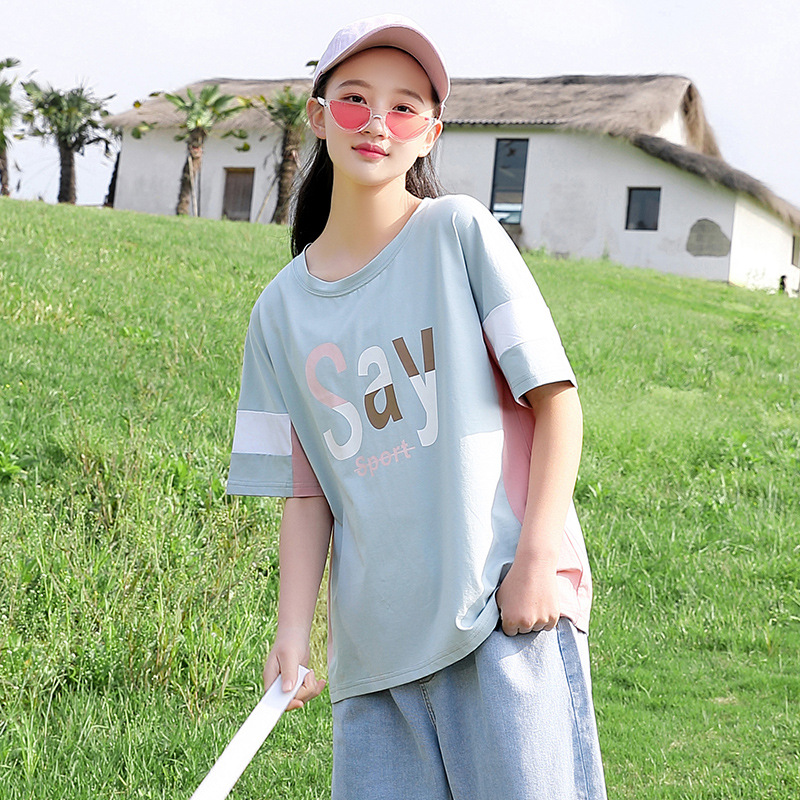 | nameOriginal | Girls' Summer Short-sleeved T-shirt Loose Contrast Color Stitching Top for Junior High School Students Summer Cotton Half-sleeved ins Trendy |