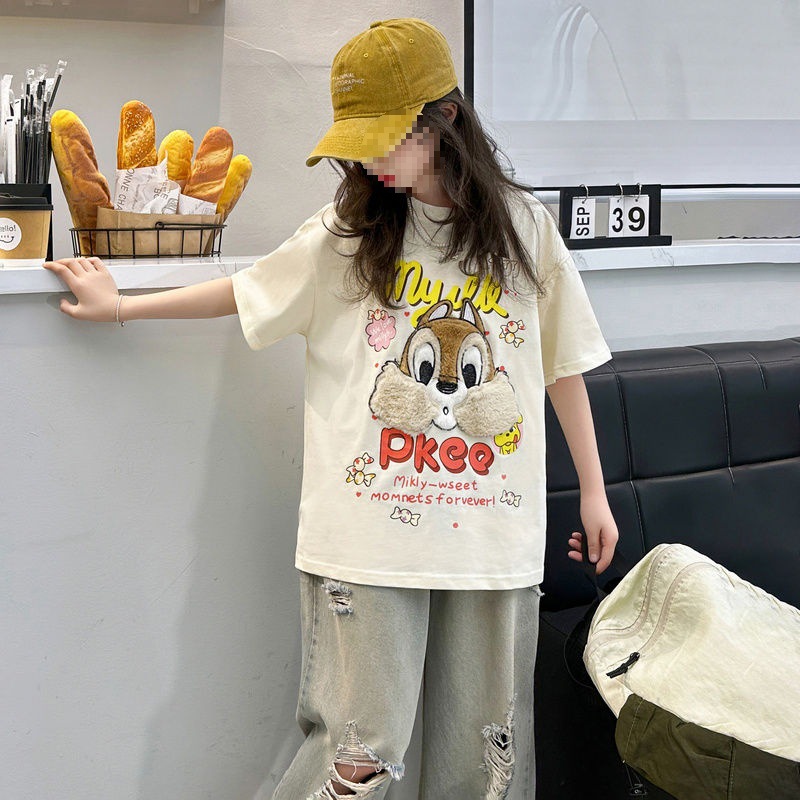Girls’ Summer Short-sleeved T-shirt Ripped Jeans suit 2024 New Children’s Summer Two-piece Set for Women