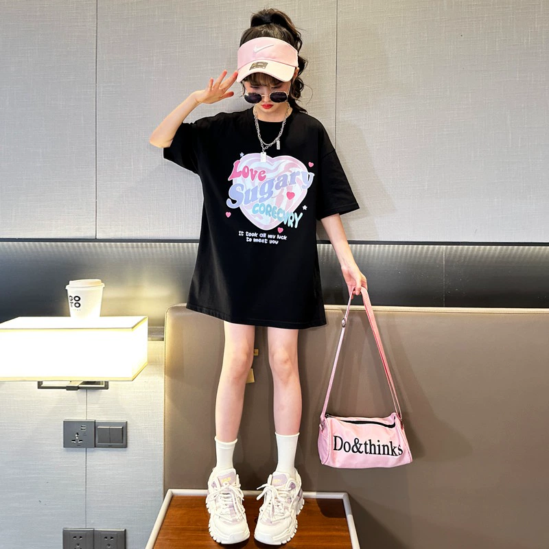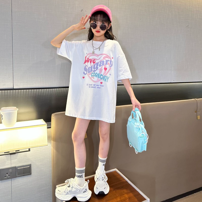 | nameOriginal | Girls summer short-sleeved tops 2024 new children's summer loose Korean style mid-length t-shirt skirt pure cotton T |