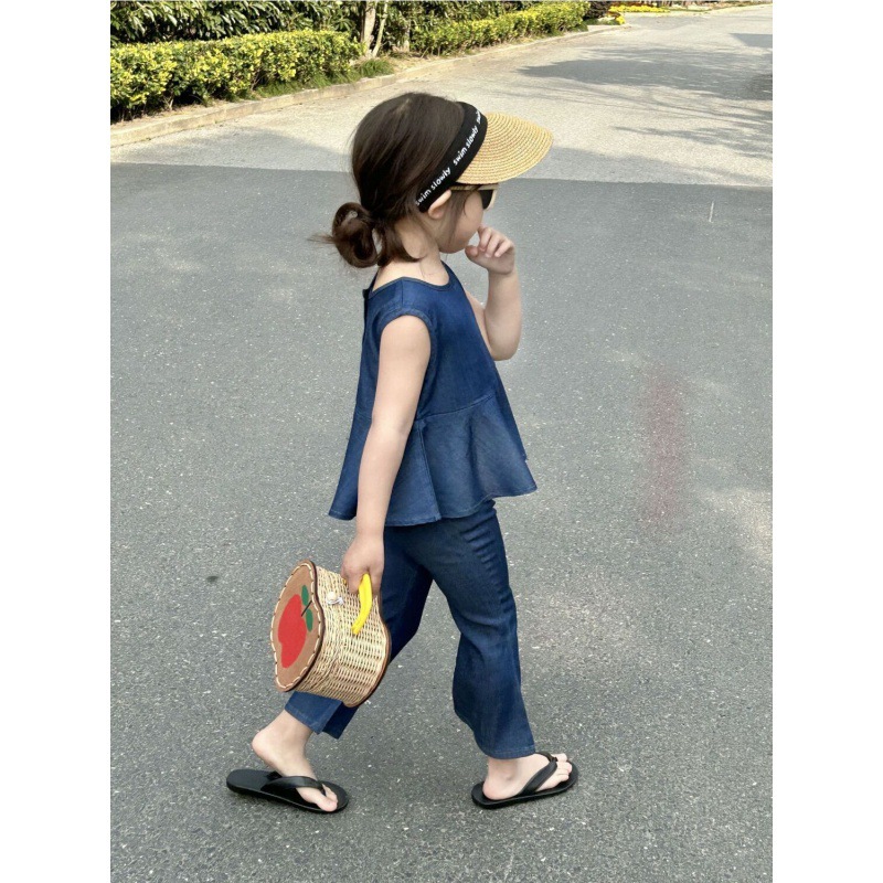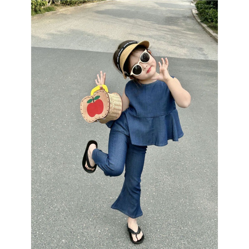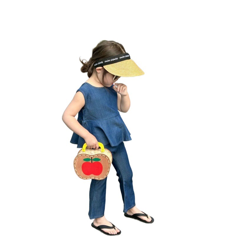 | nameOriginal | Girls' summer sleeveless Tencel Denim suit 2024 New Korean style baby girls' fashionable ruffled flared pants |