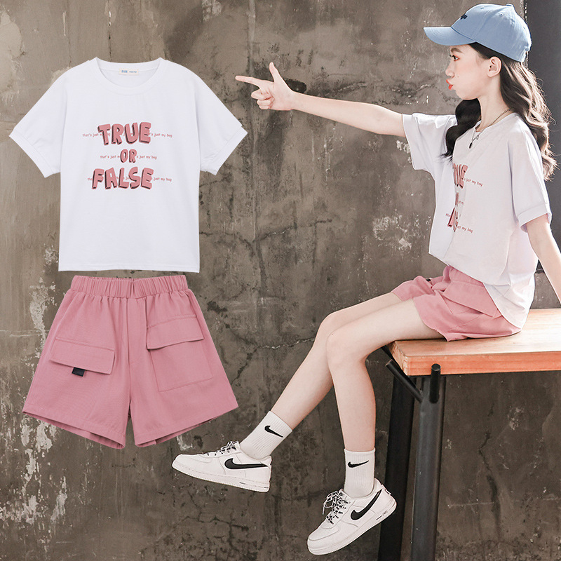 | nameOriginal | Girls' Summer Suit 2022 New Children's Stylish Short-sleeved Shorts Little Girl's Thin Two-piece Fashionable Big Children's Wear |