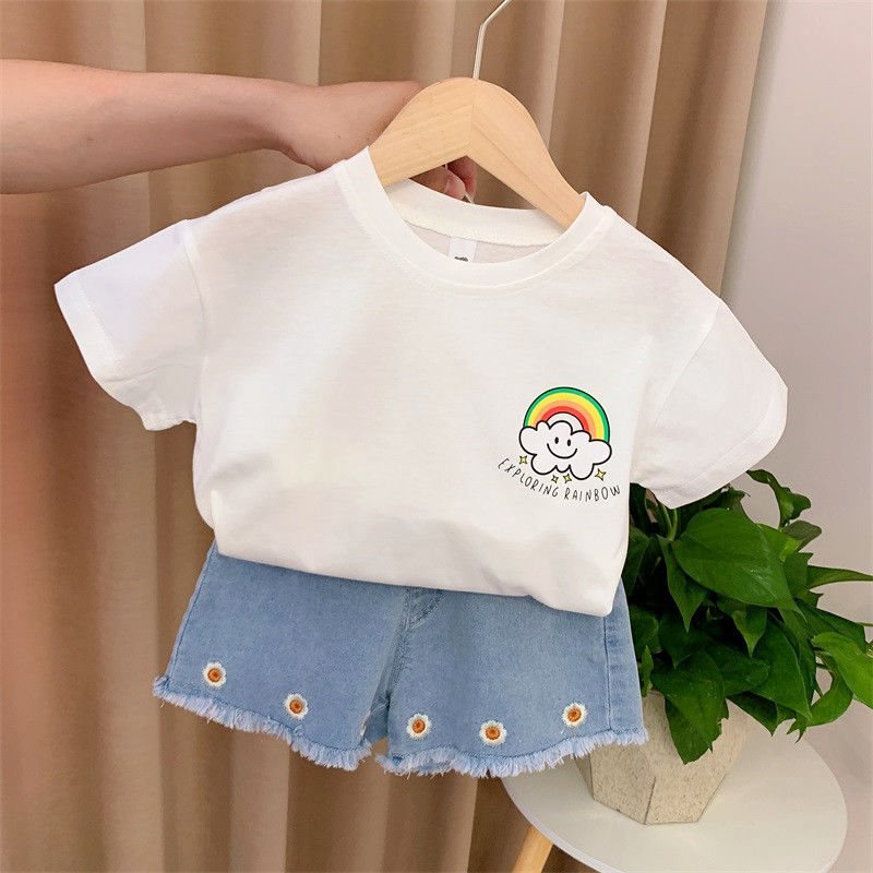 | nameOriginal | Girls summer suit 2022 new net red cotton short sleeve children's clothing children's fashion casual jeans two-piece set |