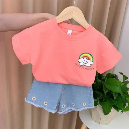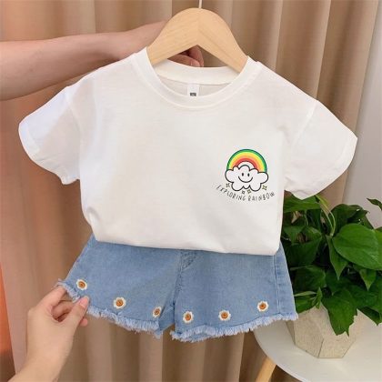 | nameOriginal | Girls summer suit 2022 new net red cotton short sleeve children's clothing children's fashion casual jeans two-piece set |