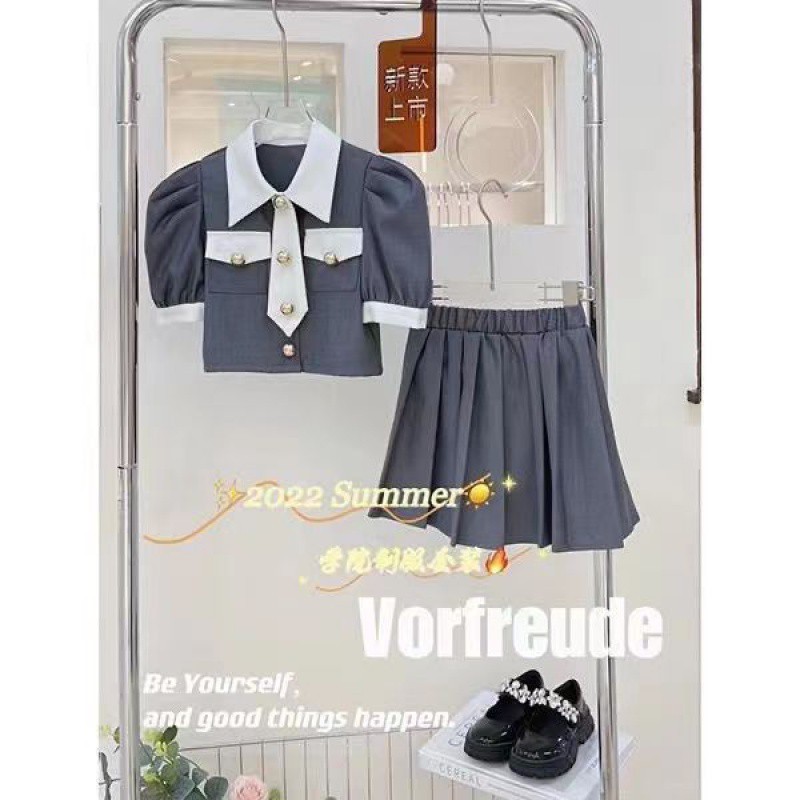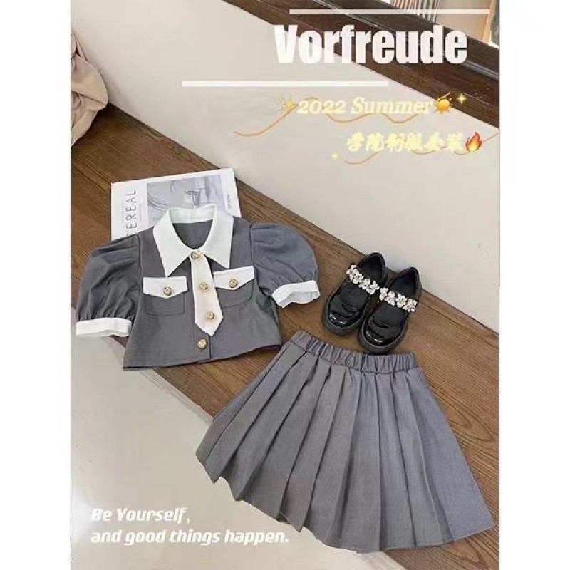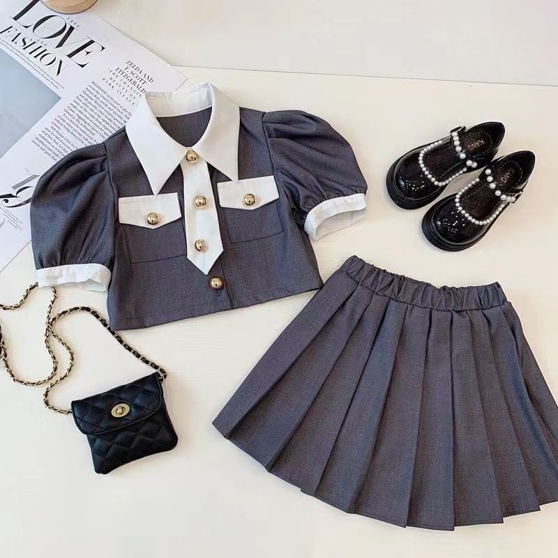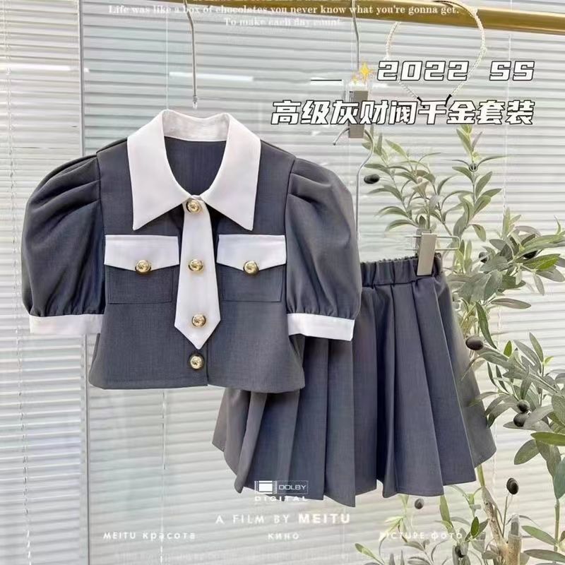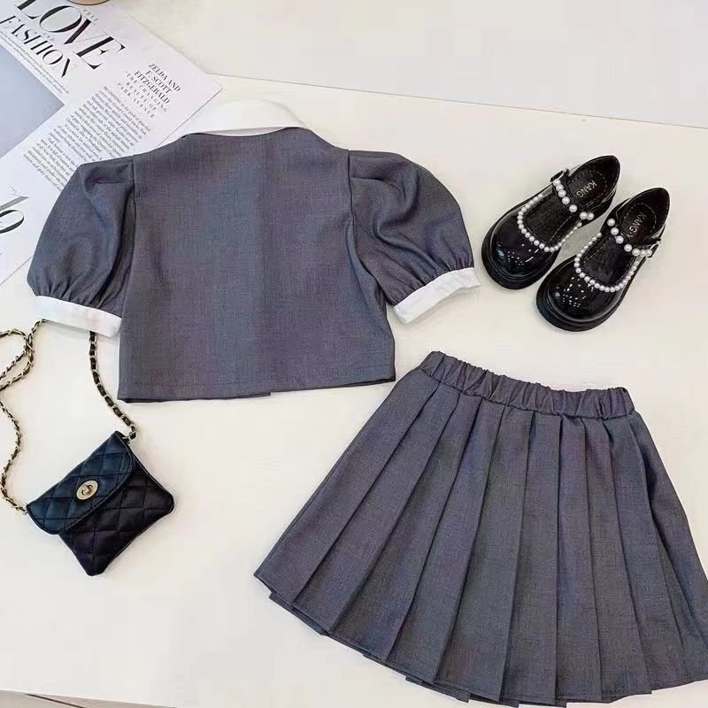 Girls' Summer suit 2024 New Children's Western Style Top Internet Celebrated Pleated Skirt Baby's College Style Two-Piece Fashionable Set